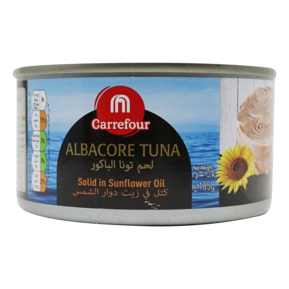 كارفور الباكور لحم تونة صلب في زيت دوار الشمس 185 غرام