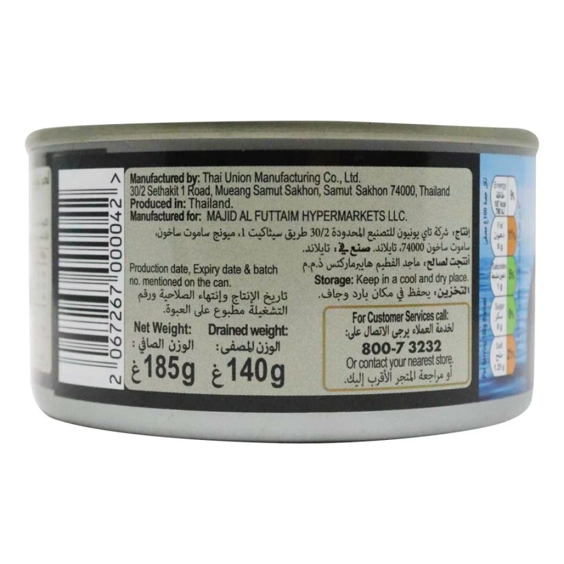 ingredients : تونة الباكور، زيت دوار الشمس، ماء، ملح.