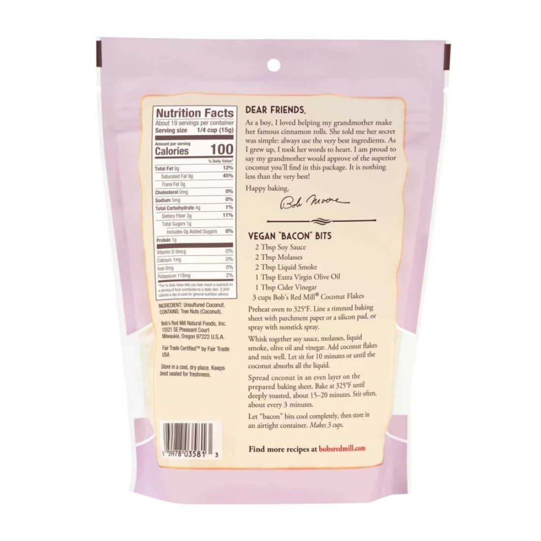 بوبس ريد ميل رقائق جوز الهند غير محلاة، غير معدلة وراثيًا، غير مضاف إليها الكبريت، 284 غرام
