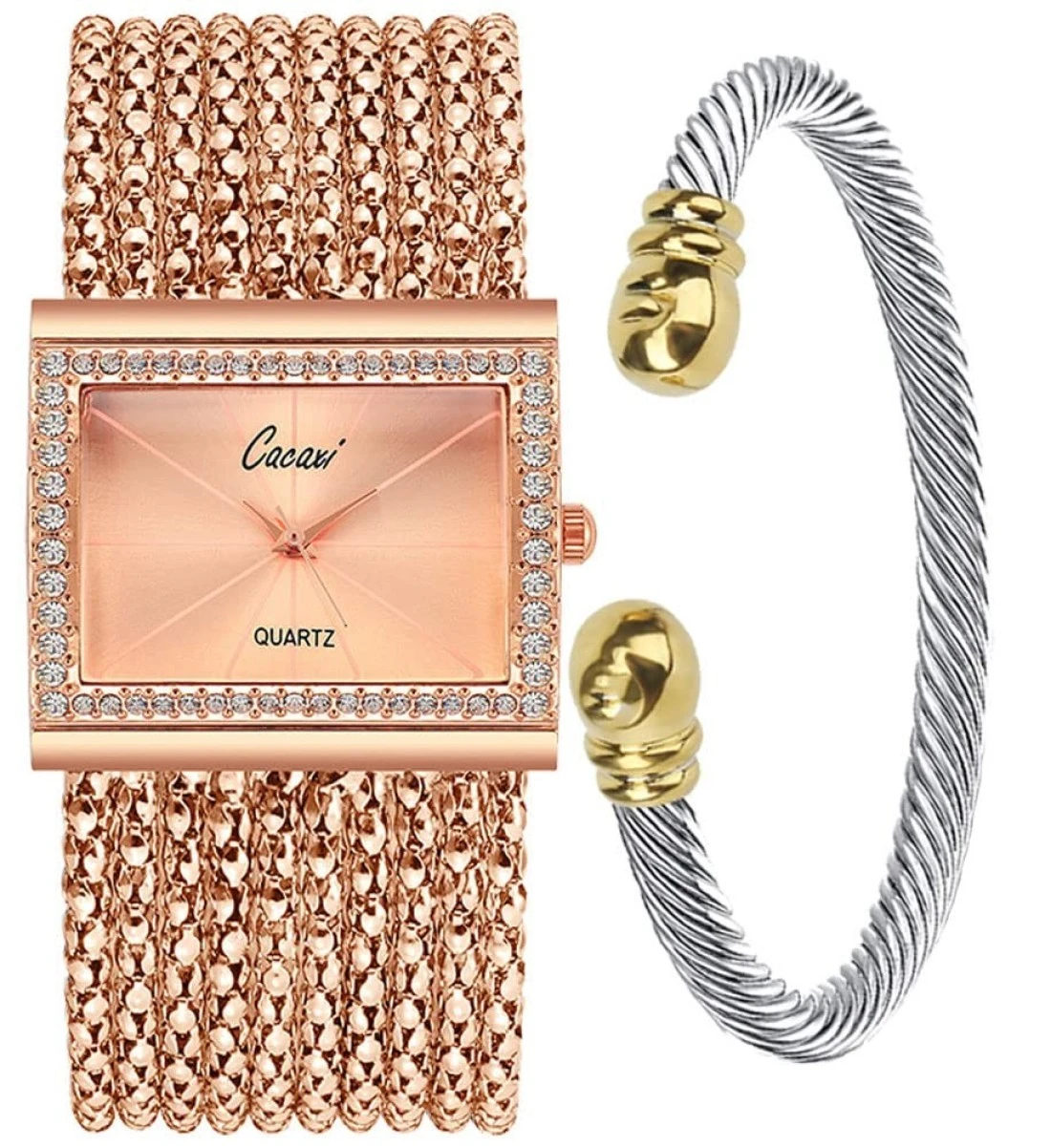 Gosasa Women's Gold Silver-Tone Multi-Chain Bracelet Watch Lady Female Dress Analog Quartz Wrist Watches with Cuff Bangle Stainless Steel Bracelets Set