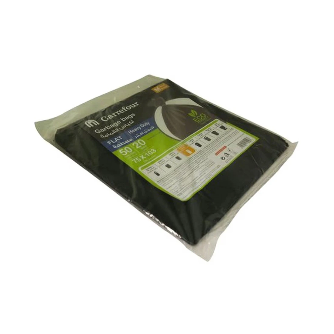 كارفور 50 غالون أكياس قمامة مسطحة عالية التحمل، حجم متوسط 20 كيس قمامة - أسود