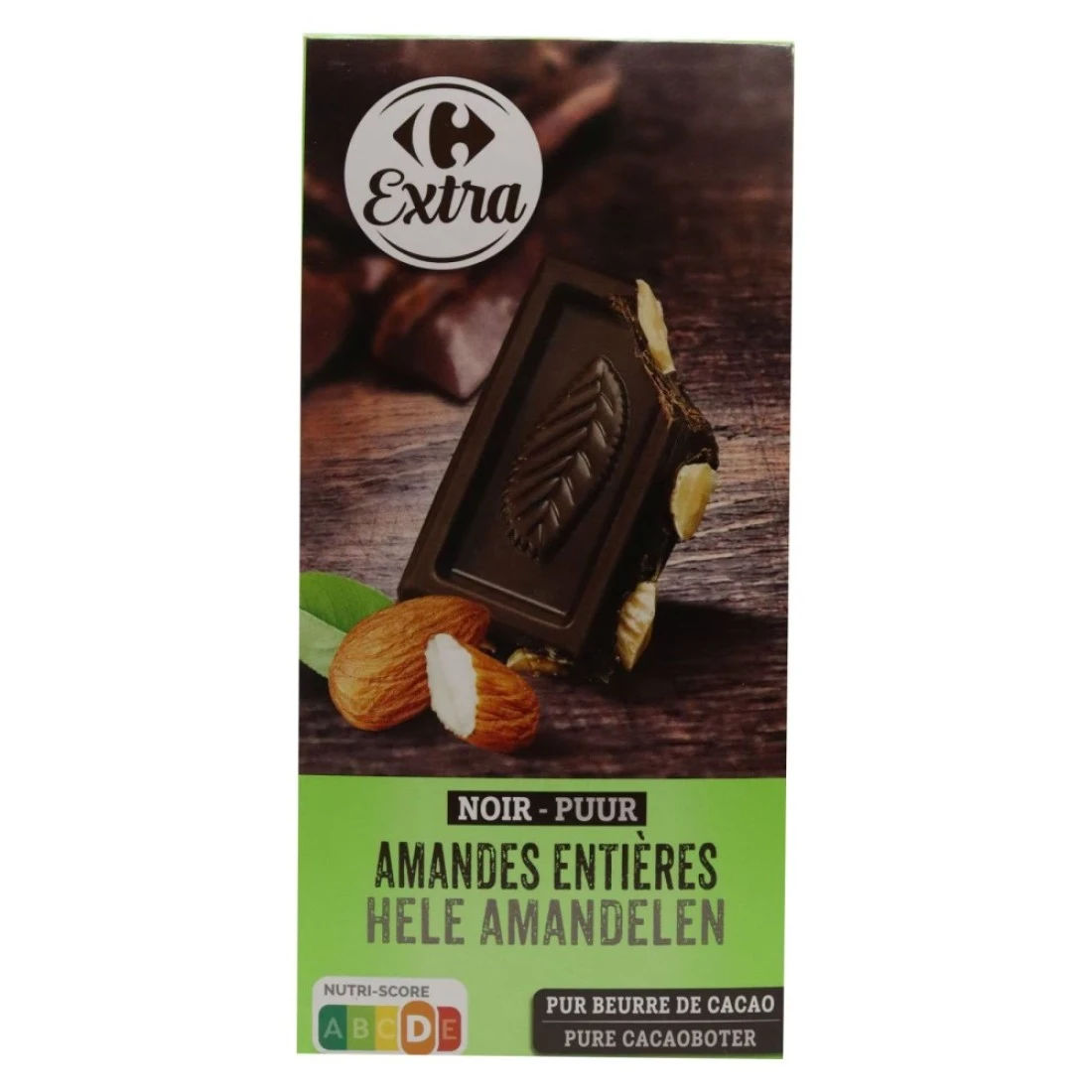 شوكولاته اللوز الداكنة من كارفور هي حلوى لذيذة لعشاق الشوكولاته. مصنوعة من شوكولاته داكنة عالية الجودة، فهي غنية وفاخرة. إضافة اللوز تمنحها قوامًا مقرمشًا وتضيف نكهة مكسراتية. مثالية لتناولها كوجبة خفيفة أو كحلوى، هذه الشوكولاته مؤكد أنها سترضي رغباتك الحلوة. إستمتع بفخامة شوكولاته اللوز الداكنة من كارفور اليوم!