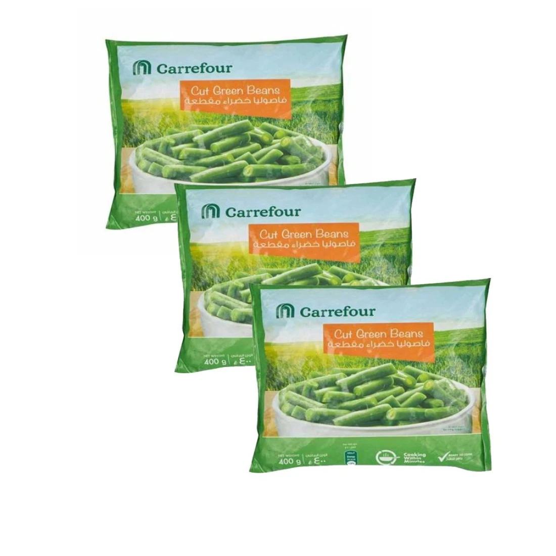 كارفور فاصوليا خضراء مقطعة 400 غرام حزمة من 3