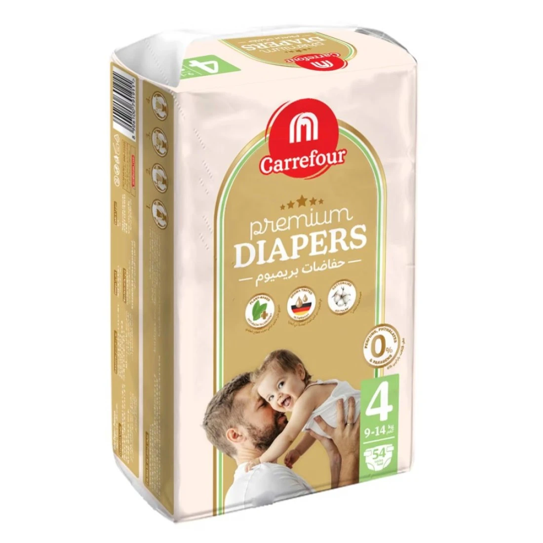 كارفور بريميوم حفاضات للأطفال مقاس 4، 9-14 كغ 54 حفاض