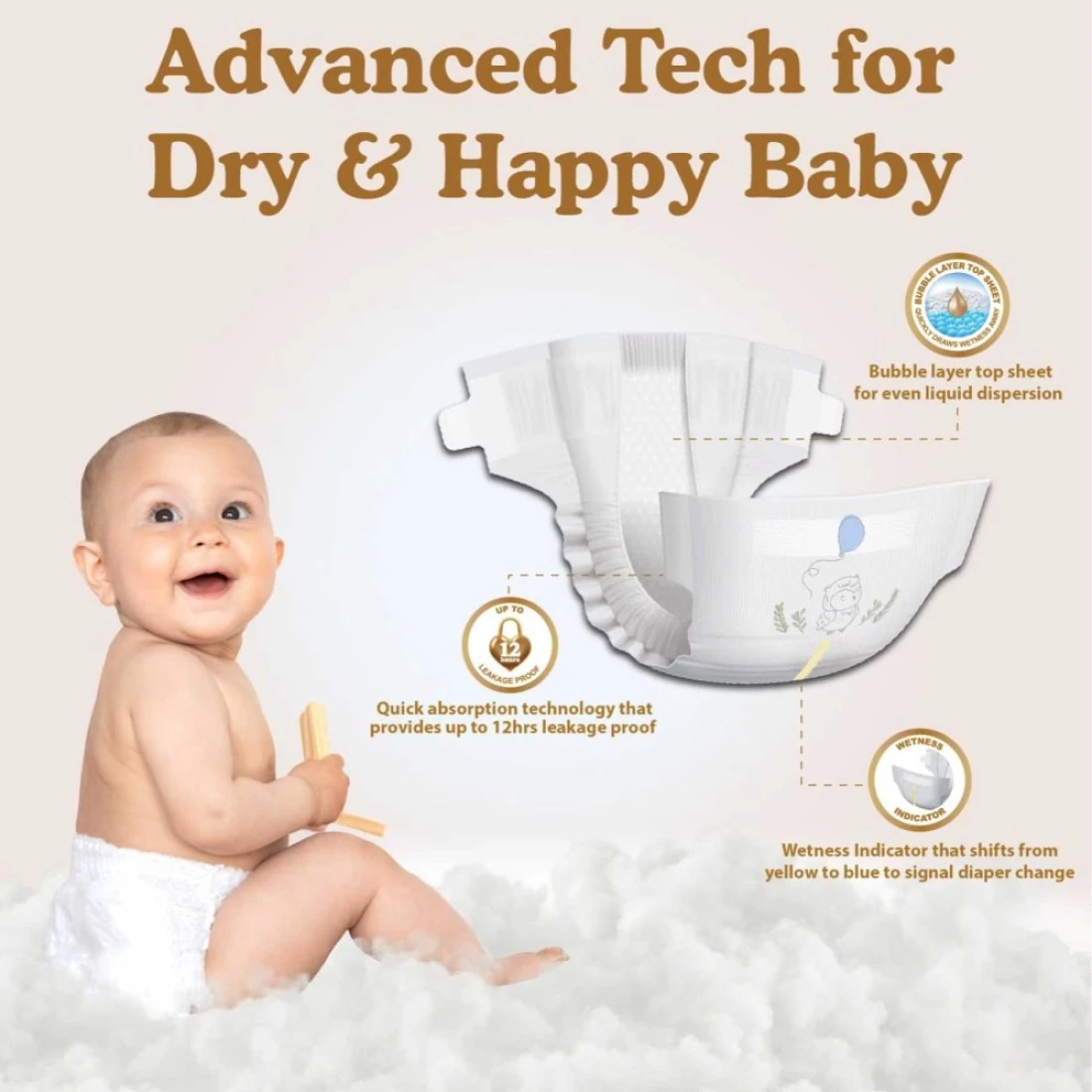 - بطانة فائقة الإمتصاص تحبس الرطوبة بعيدًا، ويحافظ على جفاف طفلك لمدة تصل إلى 12 ساعة