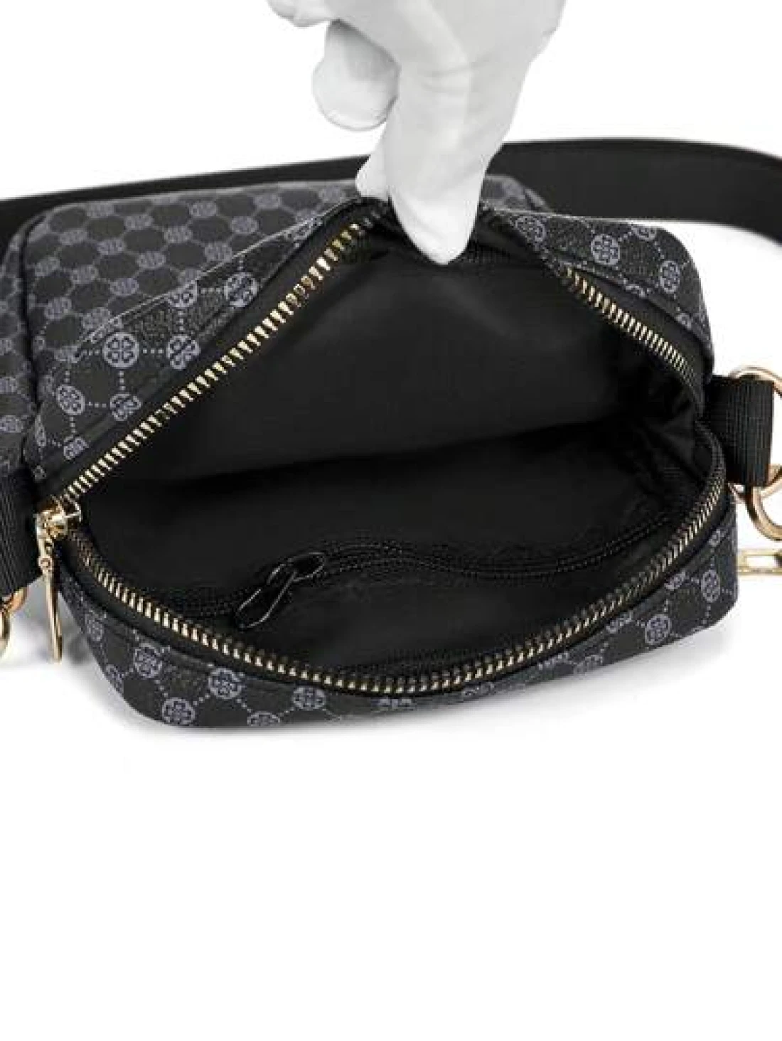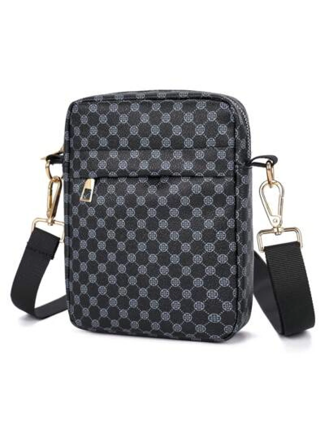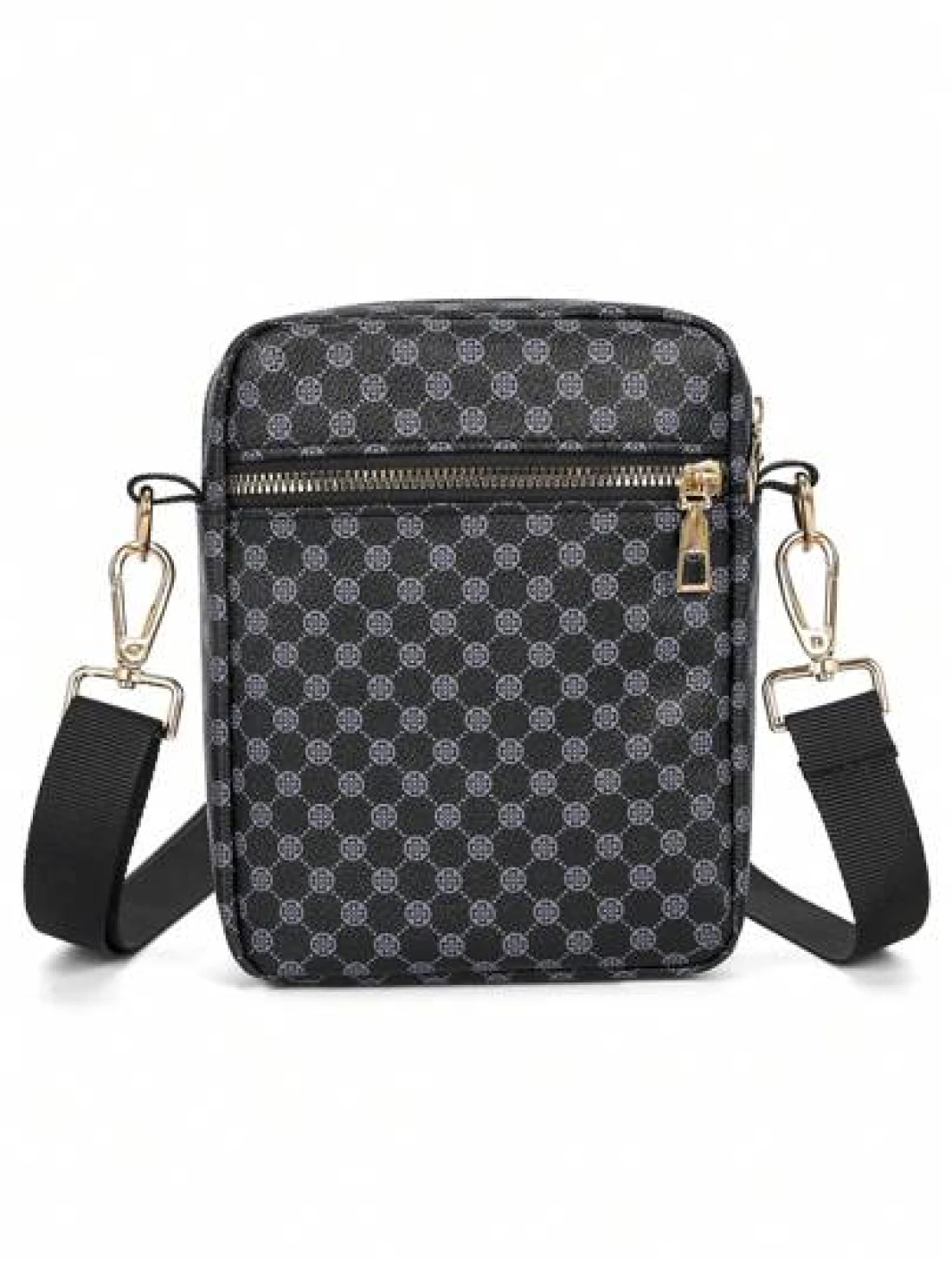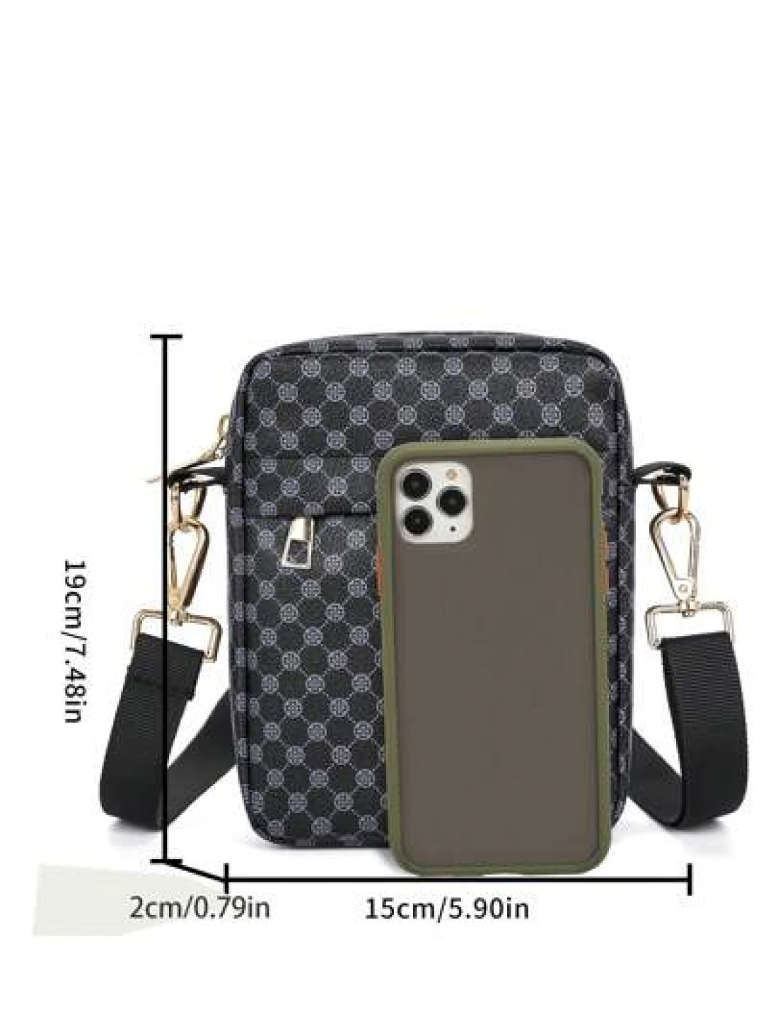حقيبة كتف/متقاطعة صغيرة مربعة مصنوعة من جلد البولي يوريثان الأسود بطراز رجعي, حقيبة متعددة الوظائف للجامعة ول