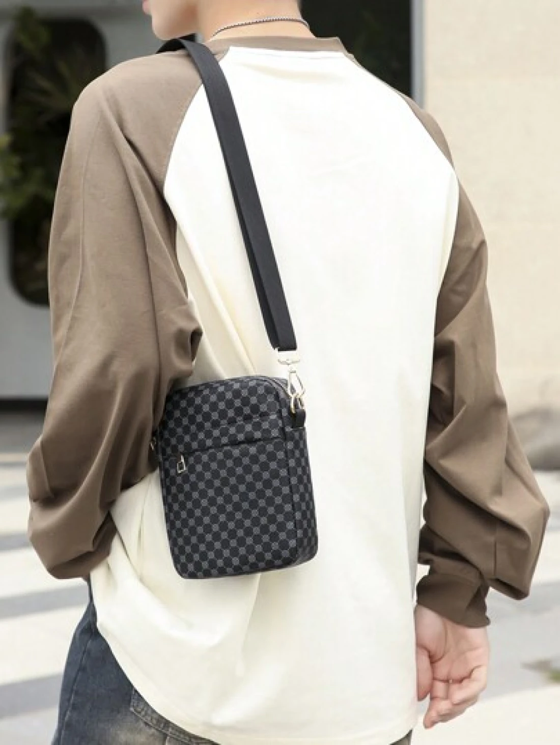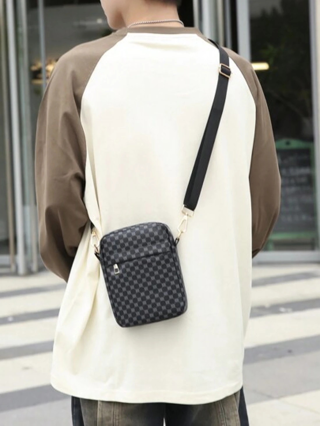 حقيبة كتف/متقاطعة صغيرة مربعة مصنوعة من جلد البولي يوريثان الأسود بطراز رجعي, حقيبة متعددة الوظائف للجامعة وللعمل اليومي, هدية عملية وأنيقة مناسبة للرجال, حقيبة محمولة للربيع و الصيف, حقيبة متقاطعة على الجسم بتصميم عتيق