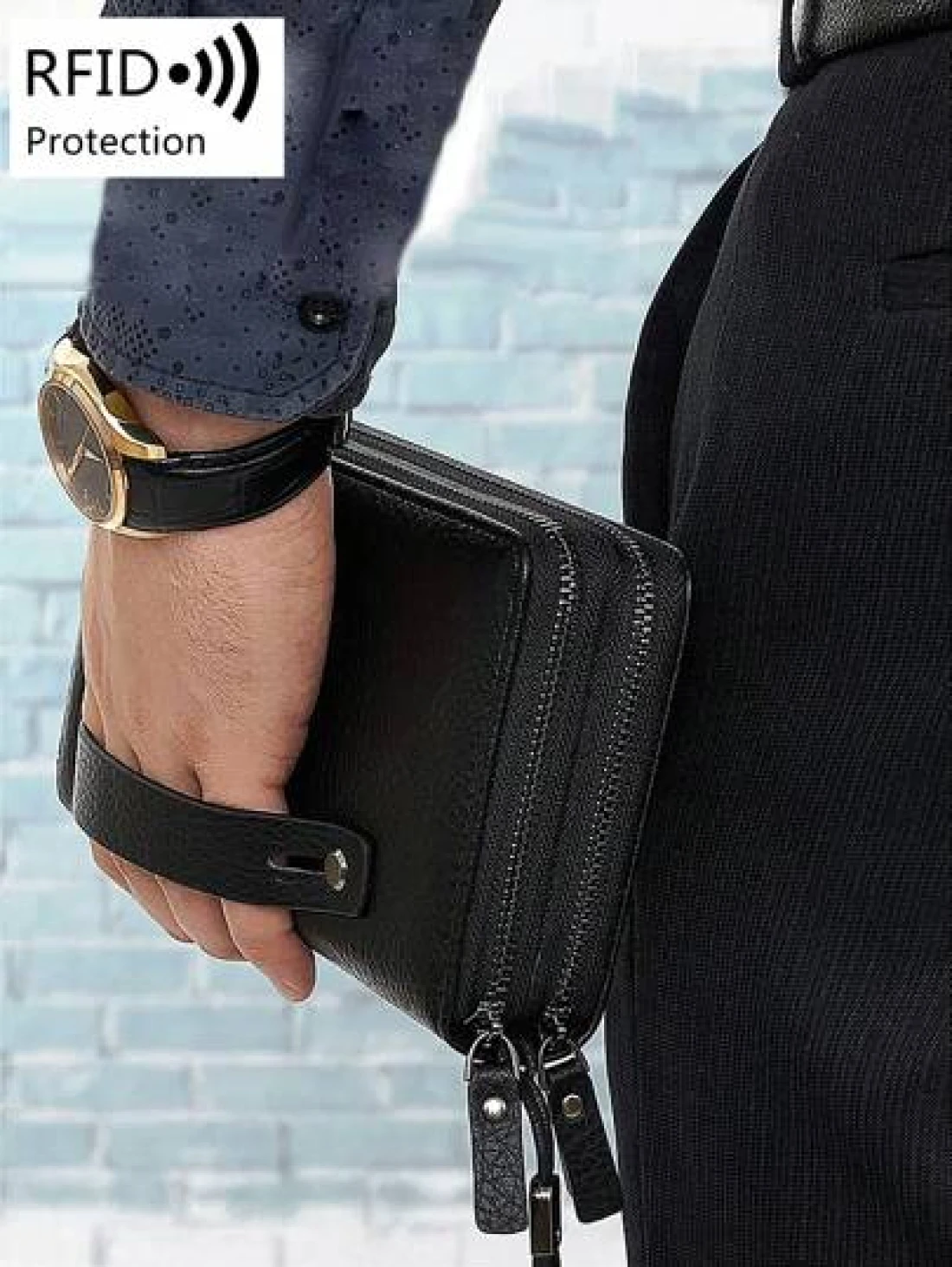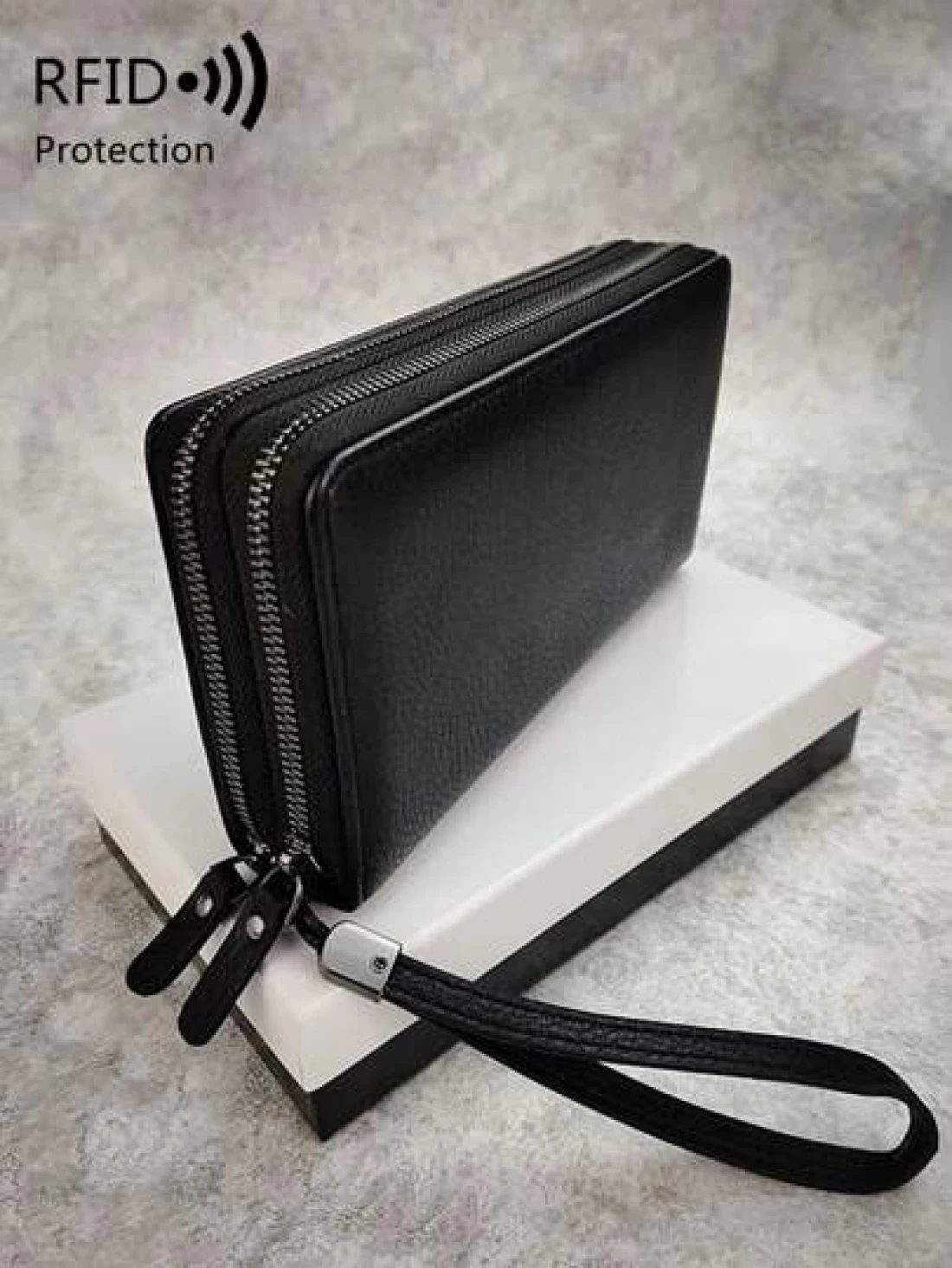 محفظة رجالية مانعة للقراءة لأجهزة RFD ذات لون أحادي بسيط مع معصم، حقيبة يد مصنوعة من جلد صناعي عصري مفرغة ذات طب