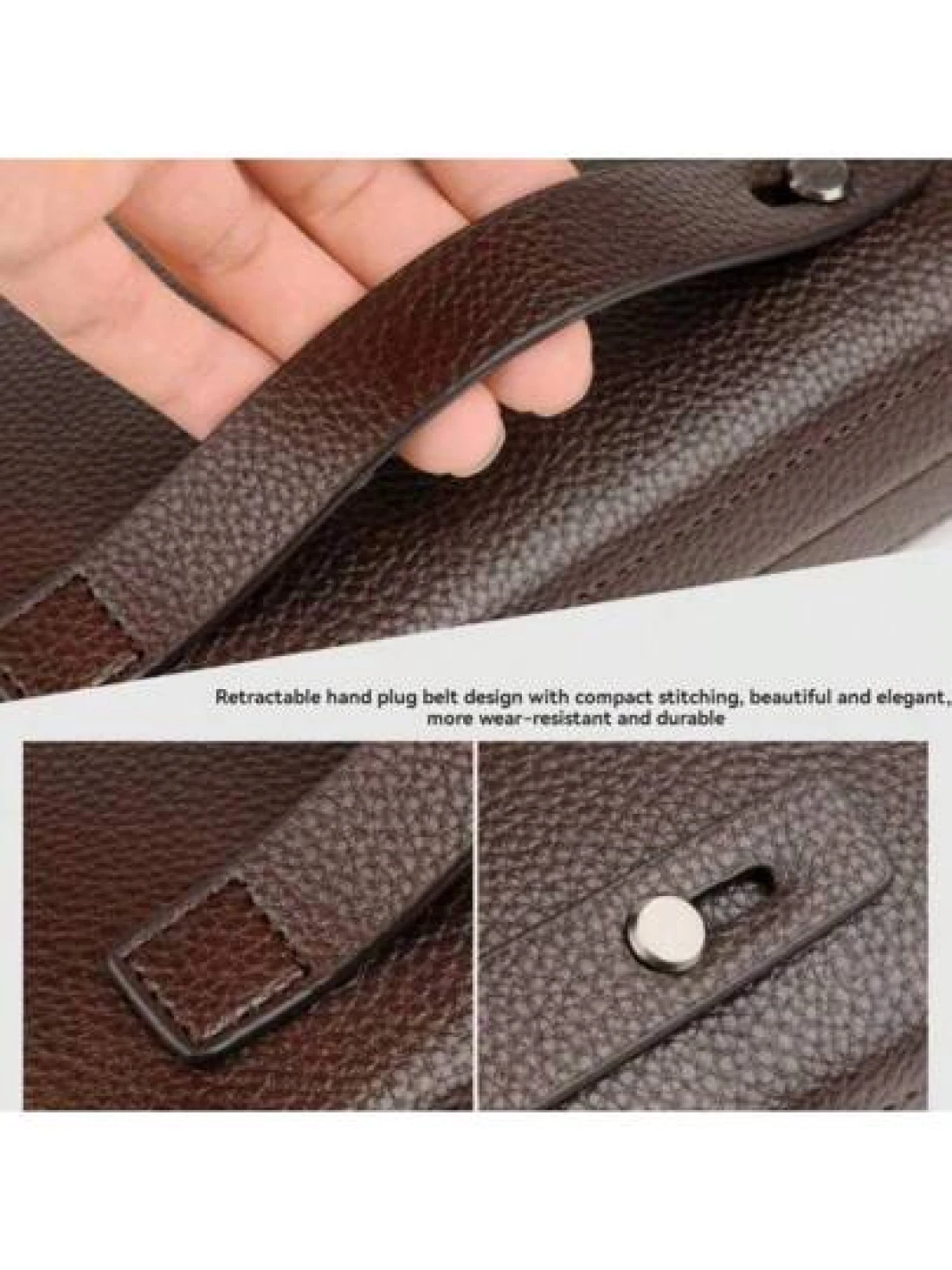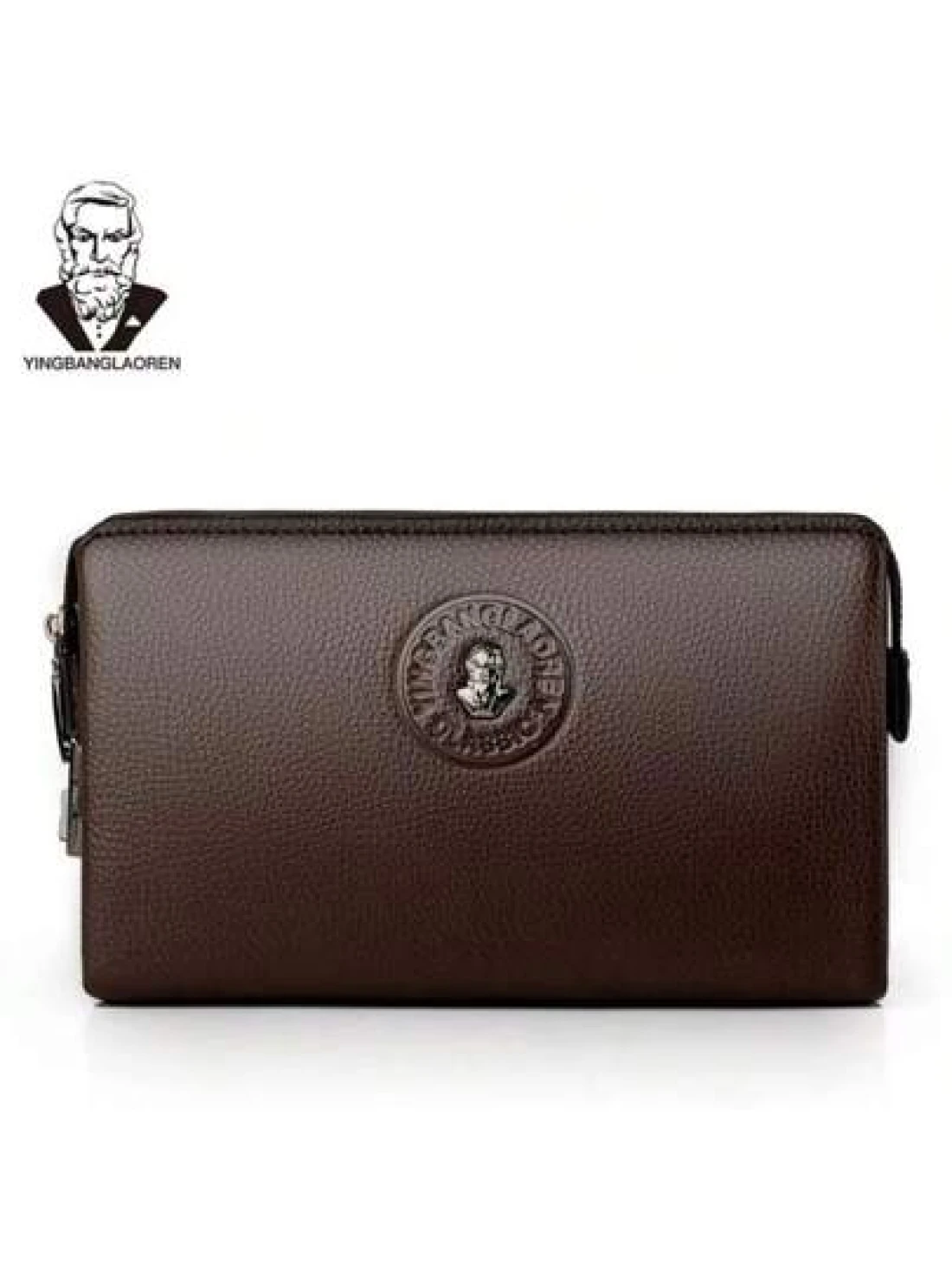 محفظة جلدية للرجال، محفظة جلدية للرجال بقفل كلمة مرور للأعمال، محفظة جلدية مضادة للسرقة بحامل للهاتف ، حقيبة سفر ، لون القهوة ، متينة