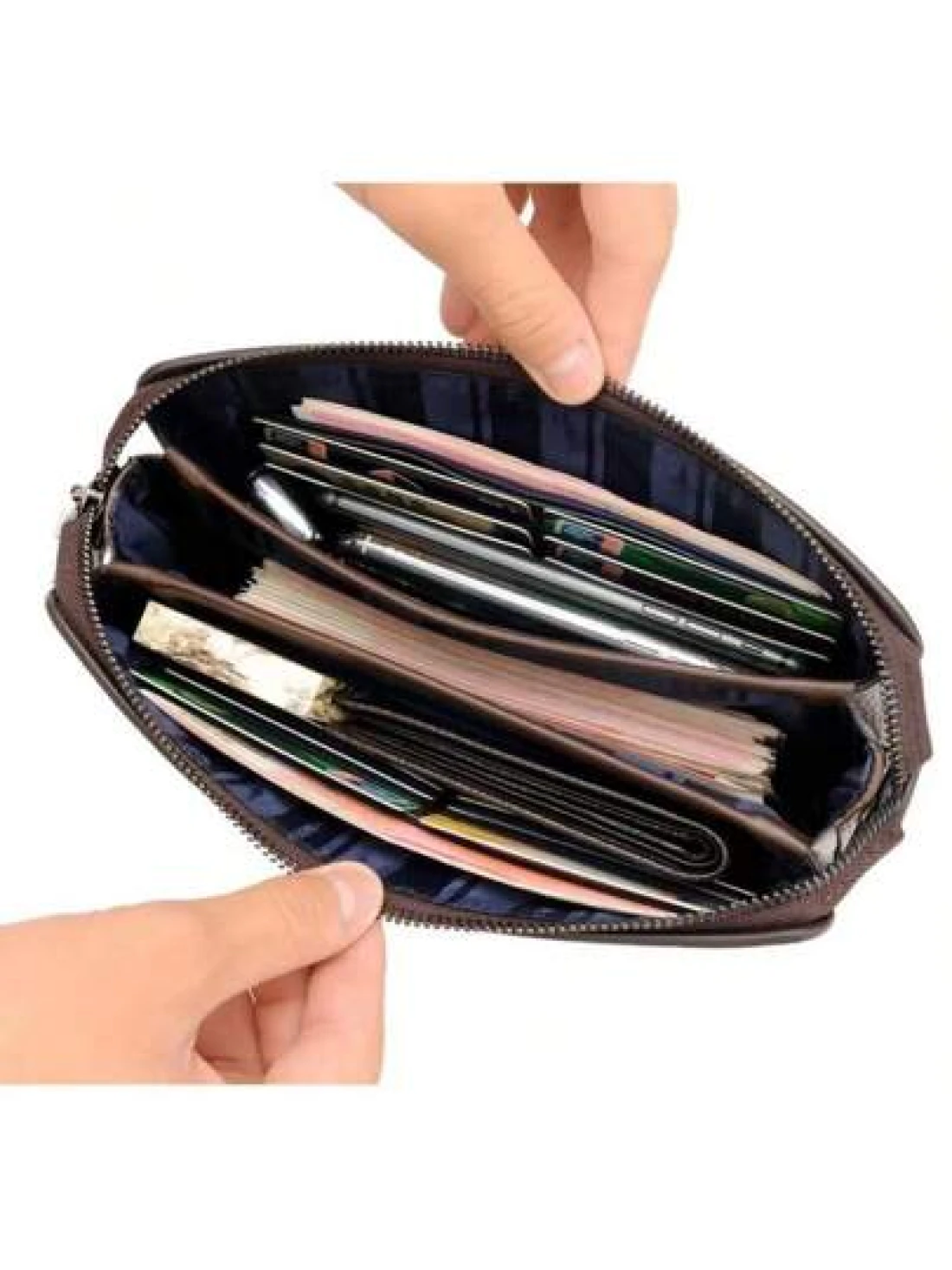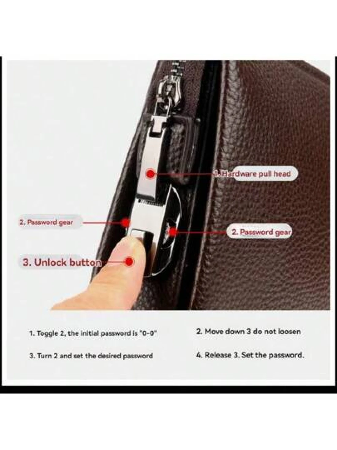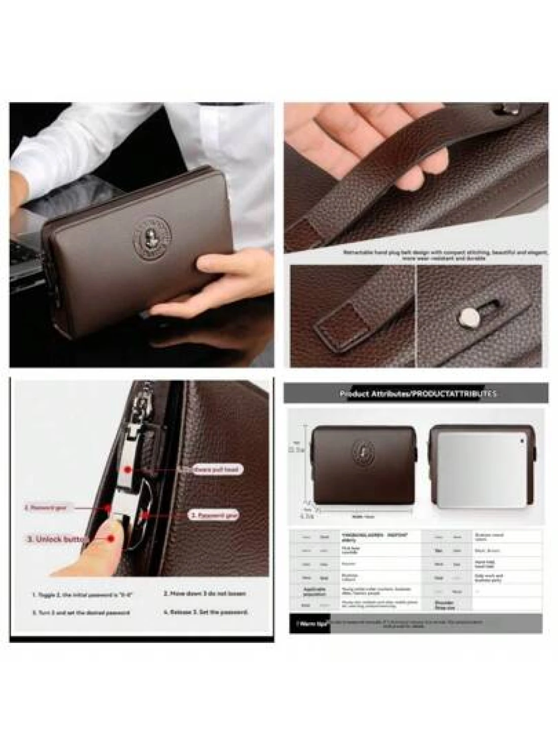 محفظة جلدية للرجال، محفظة جلدية للرجال بقفل كلمة مرور للأعمال، محفظة جلدية مضادة للسرقة بحامل للهاتف ، حقيبة