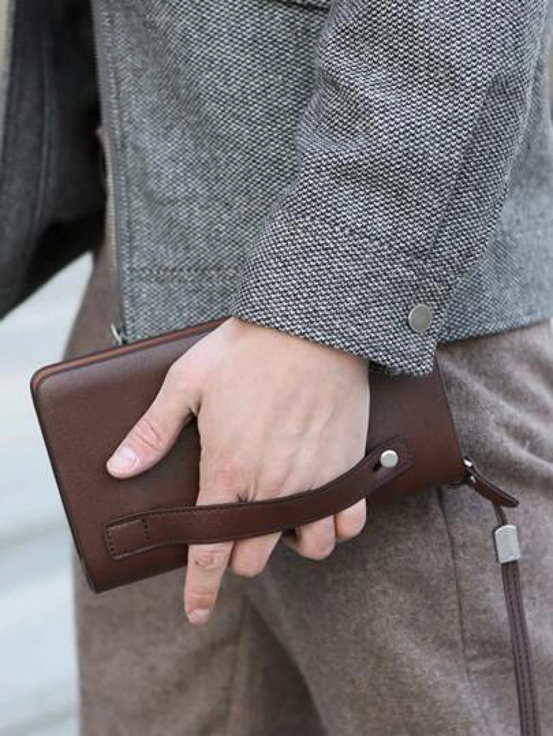 Leather Men s Clutch Wallet Men s Business Password Lock Wallet Anti Theft Clutch Wallet With Phone Stand Handbag Travel Bag Coffee Color Durable