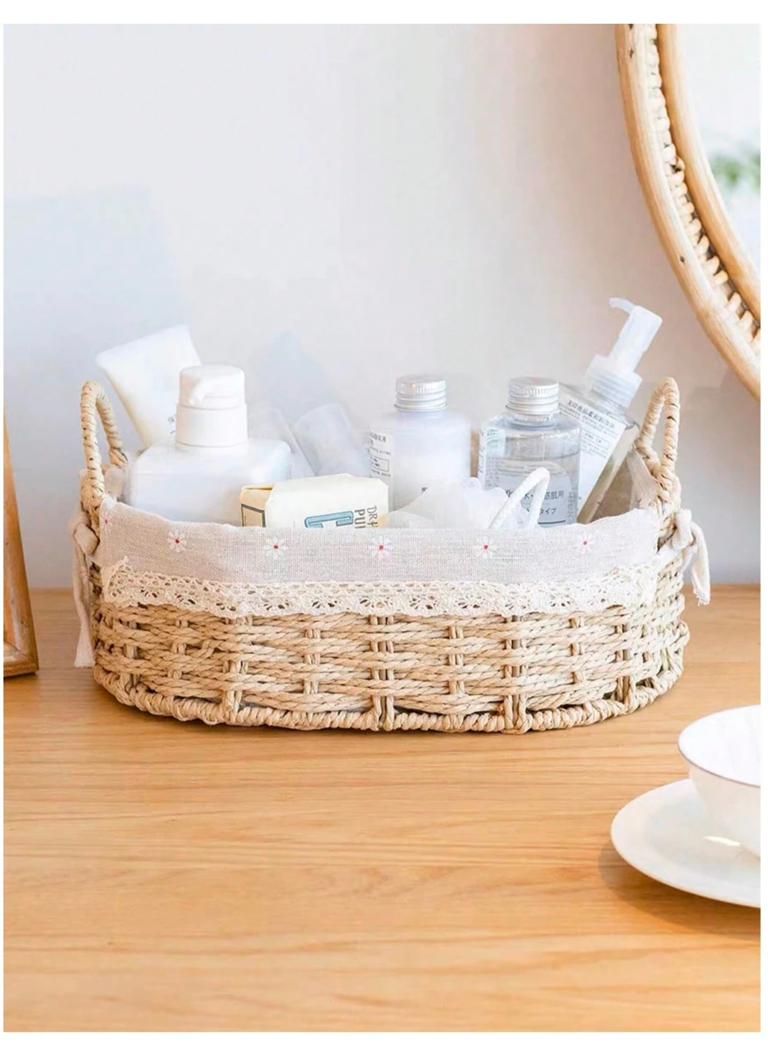 - Eco-Friendly: Handwoven from sustainable paper rope with a sturdy plastic frame.