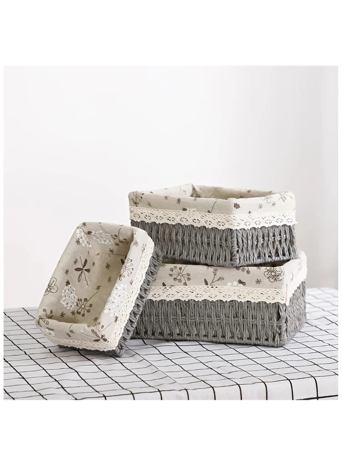 مجموعة من 3 سلال تخزين منسوجة صديقة للبيئة - صناديق مستطيلة متينة بإطار بلاستيكي قوي وبطانة قماشية قابلة للإزالة، مثالية لتنظيم الأغراض الصغيرة، الألعاب، الكتب، أدوات التجميل، وأكثر - رمادي
