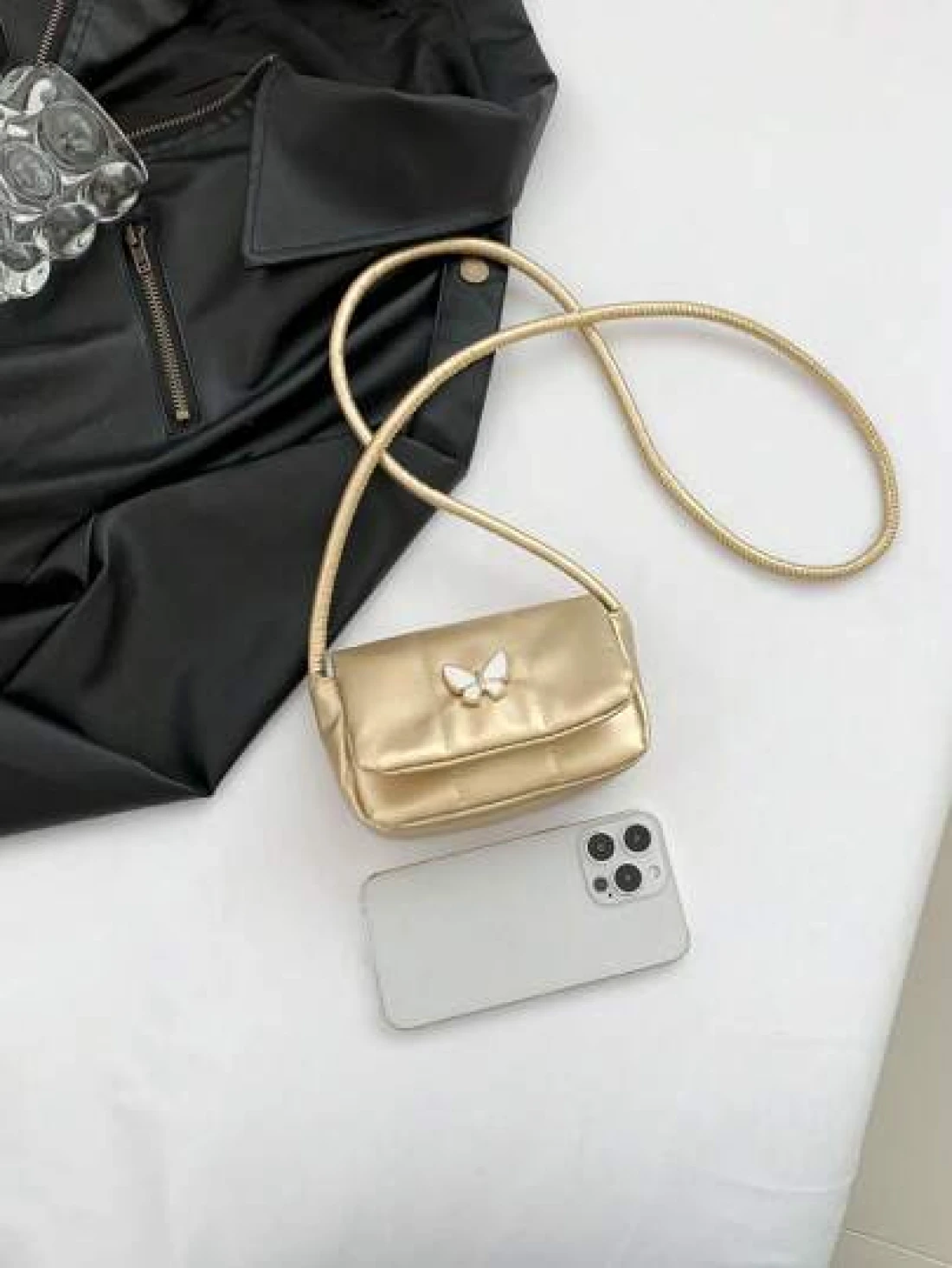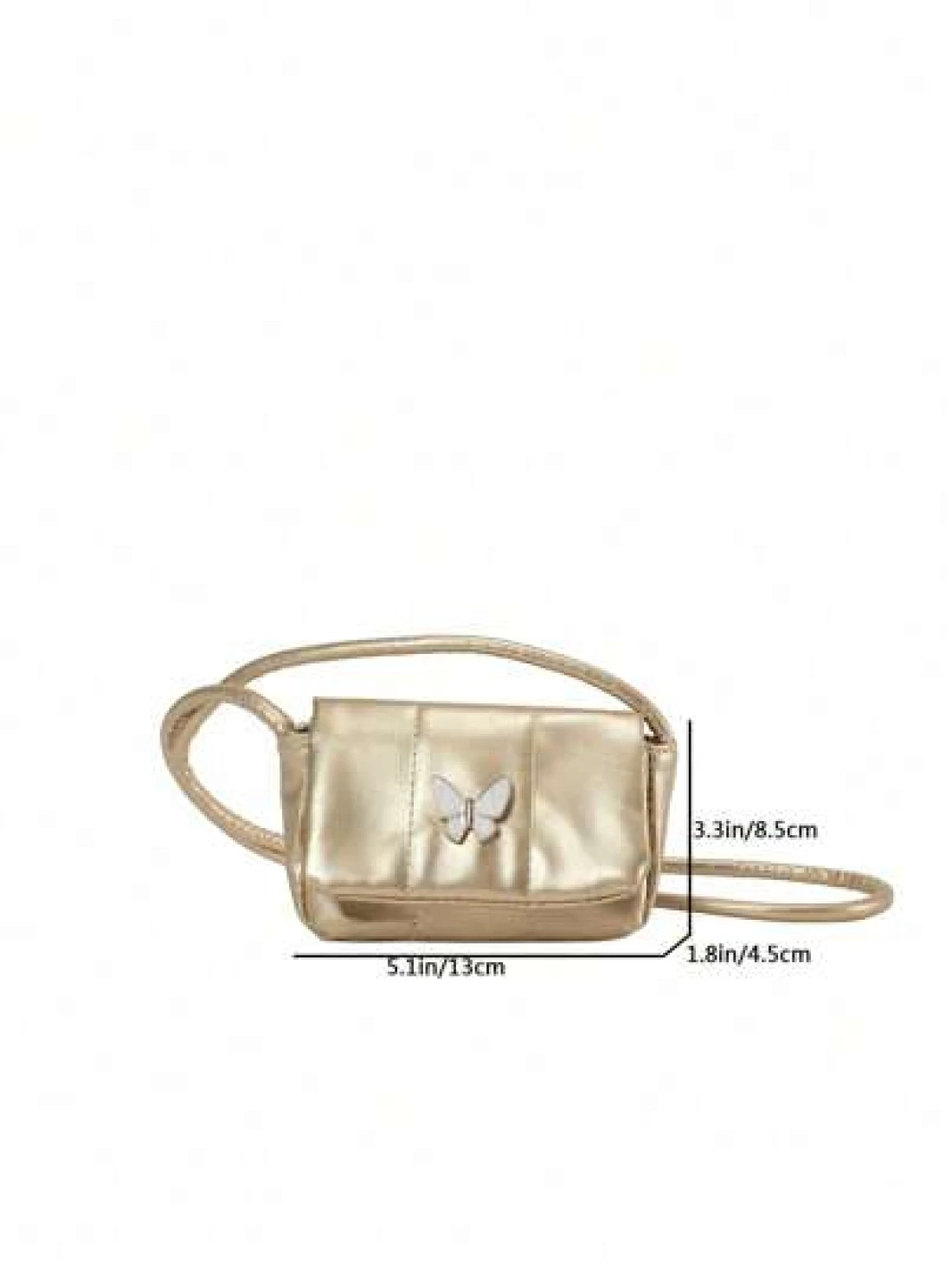 1pc Pu Magnet Closure Fashionable And Simple Solid Color Butterfly Decoration Quilted Crossbody Small Square Bag Versatile Mini Shoulder Crossbody Bag Niche Design Girl Coin Purse Play Comfortable Sho