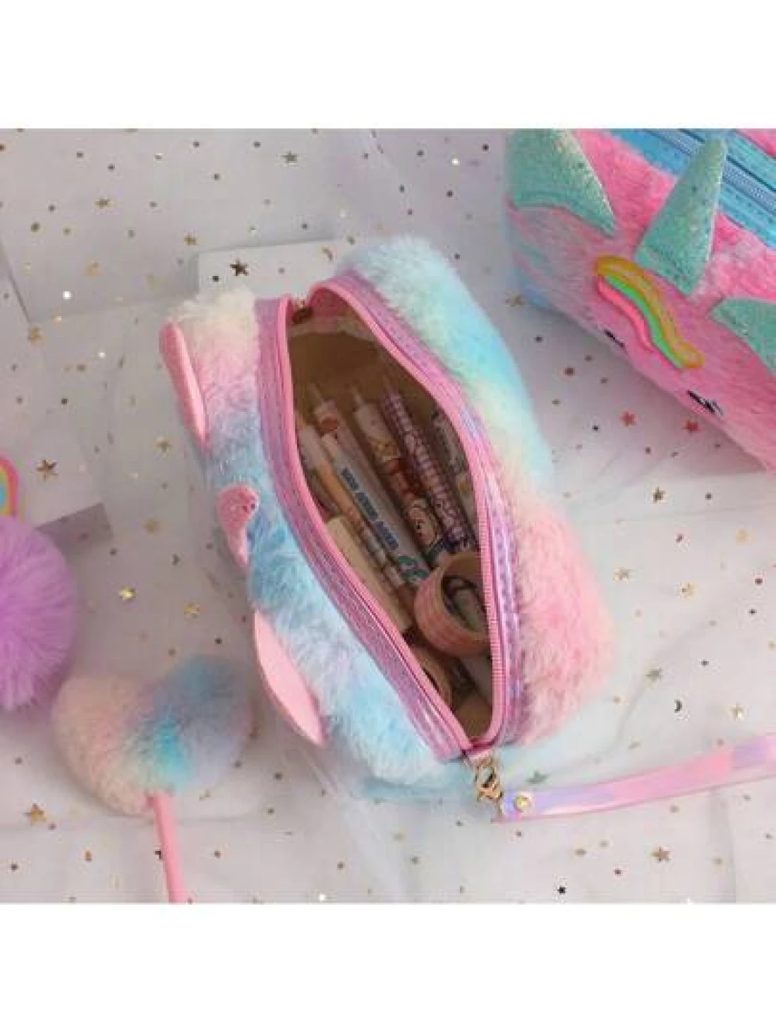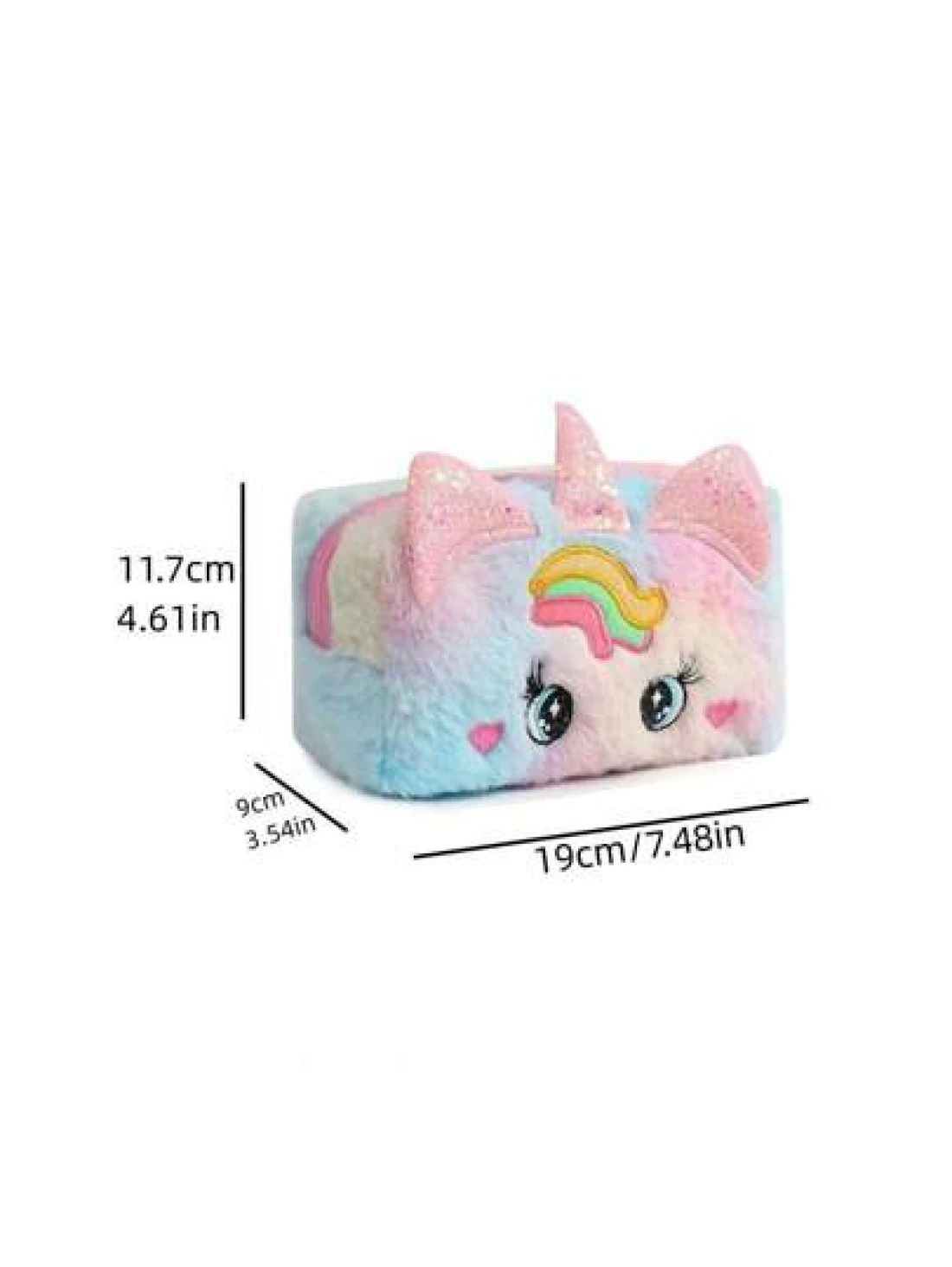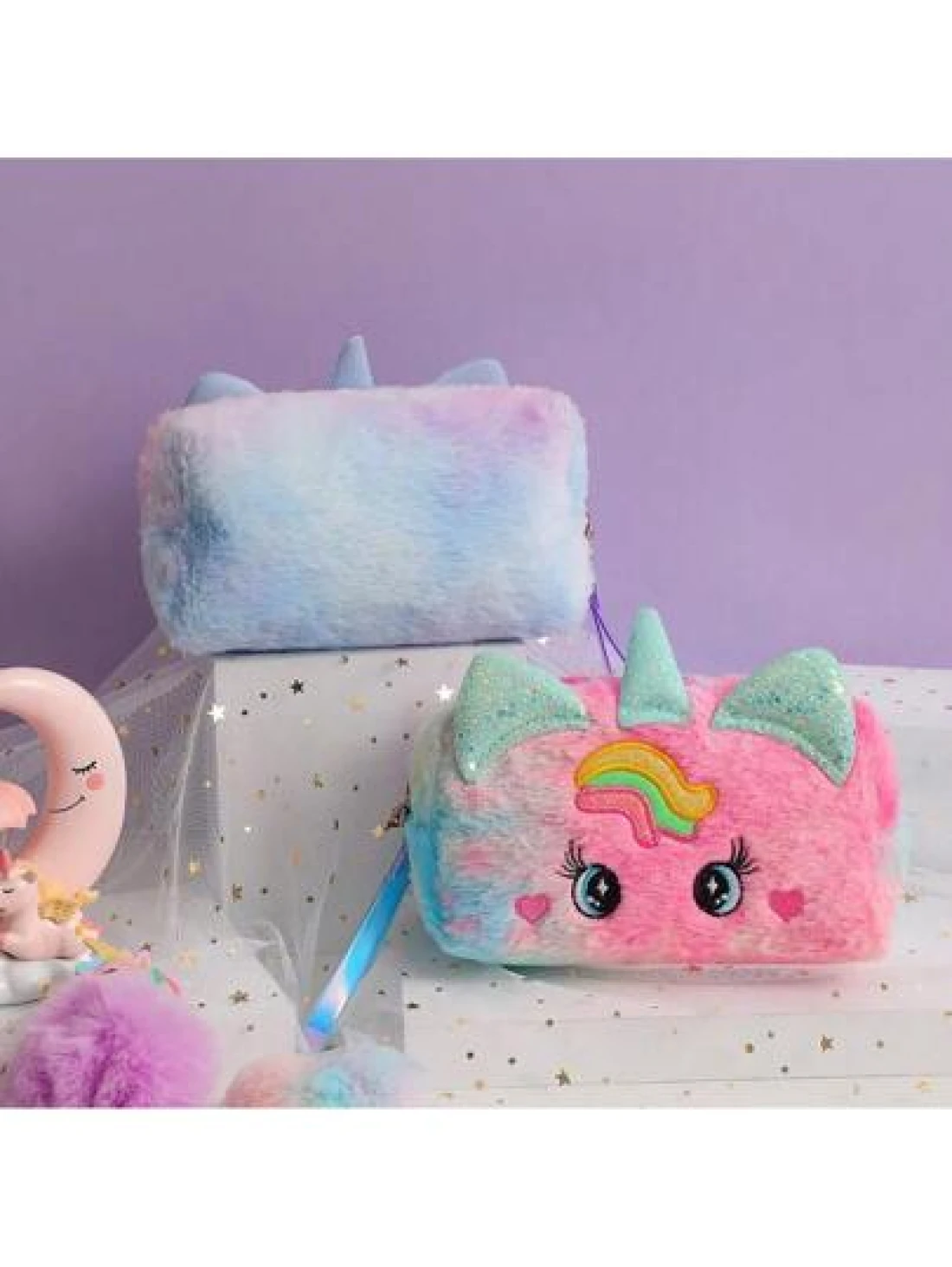 حقيبة مستحضرات تجميل من القطيفة على شكل وحيد القرن الكرتوني ذات عيون كبيرة، حقيبة يد لطيفة للفتيات لمستلزمات الزينة، حافظة أقلام قرطاسية، محفظة عملات معدنية للأطفال، لون عشوائي
