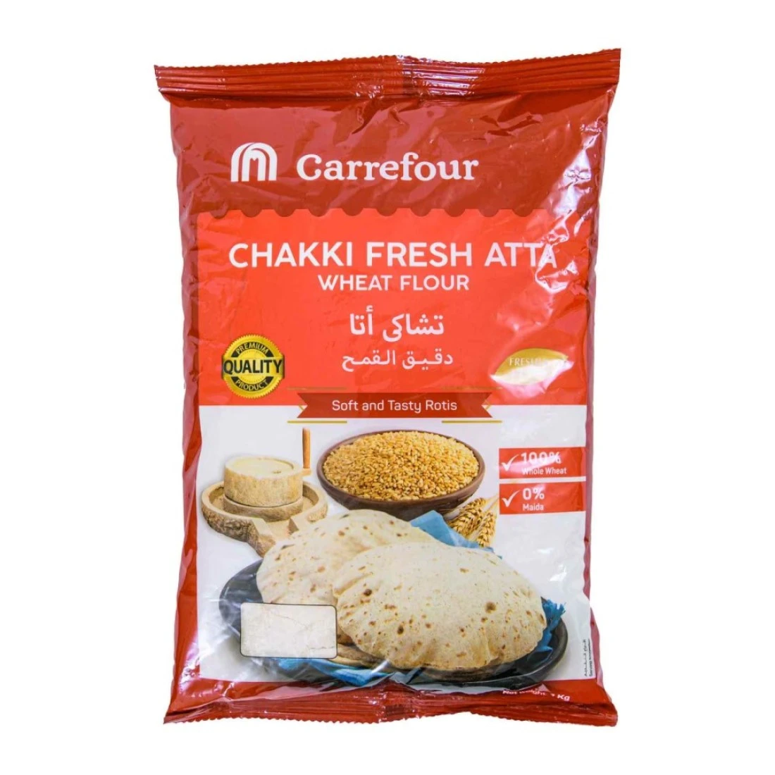 Carrefour Chakki Fresh Atta 1kg is a high-quality, stone-ground whole wheat flour. It is made from the finest quality wheat grains, ensuring that it is rich in nutrients and high in fiber. This atta is perfect for making chapatis, parathas, and other homemade Indian breads. The traditional stone grinding process used to produce this atta helps retain the natural grain flavor and texture, resulting in soft and delicious rotis. Carrefour Chakki Fresh Atta 1kg is a trusted brand that offers convenience and great taste for all your cooking needs.