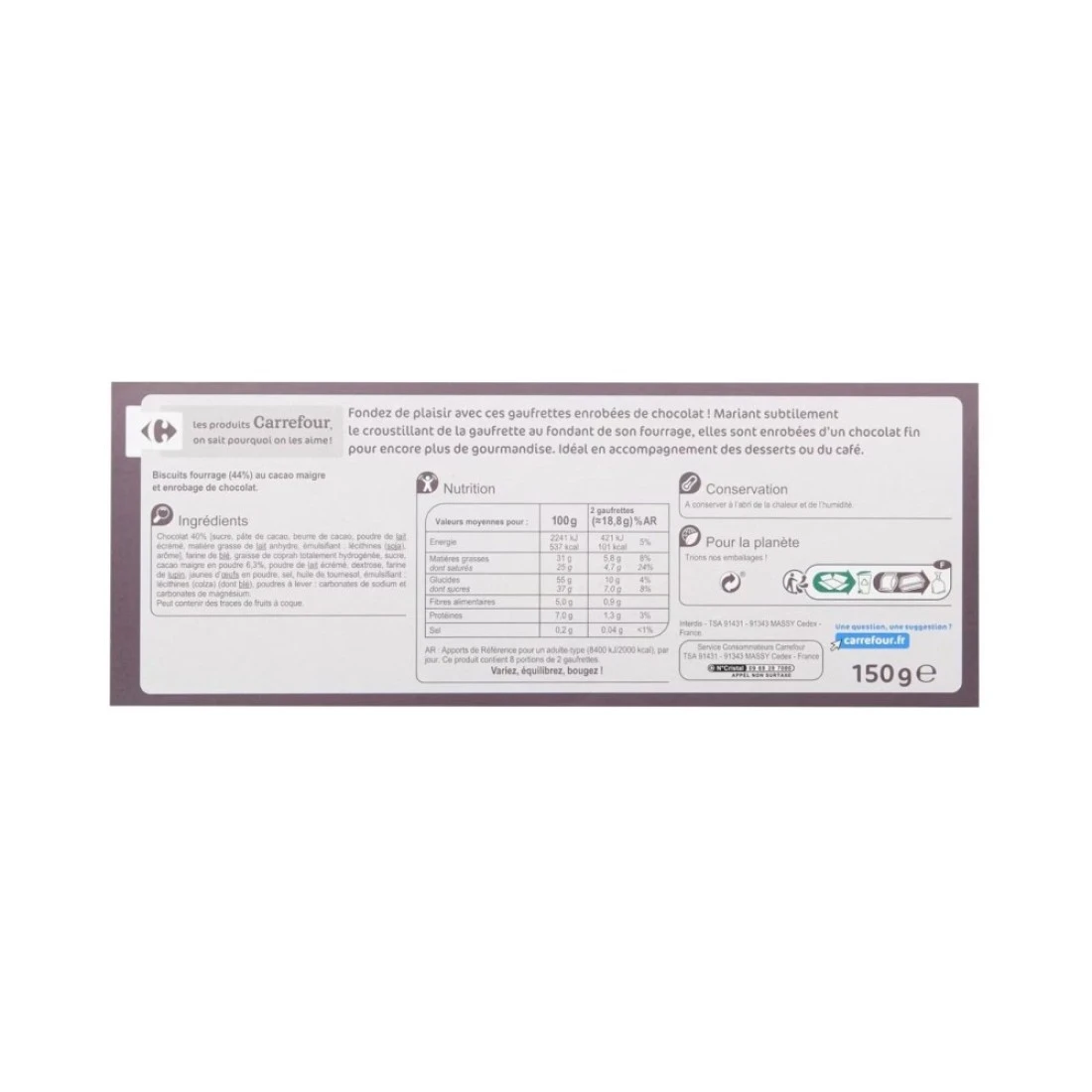 Carrefour Coated Wafers are a delicious snack that combines the crispy texture of wafers with a smooth and creamy chocolate coating. These wafers are perfect for those who love the combination of sweet and crunchy. with a convenient pack size of 150g, you can easily enjoy these wafers on the go or share them with friends and family. Whether you're craving a mid-day treat or looking for something to satisfy your sweet tooth Carrefour Coated Wafers are the perfect choice.