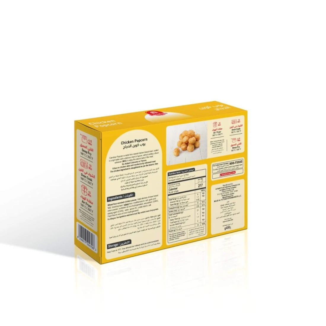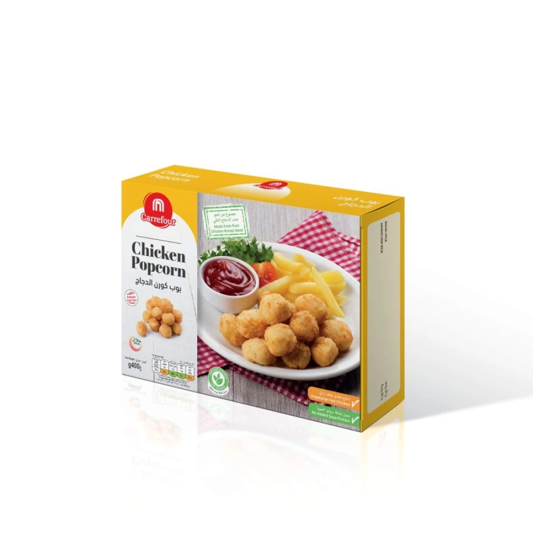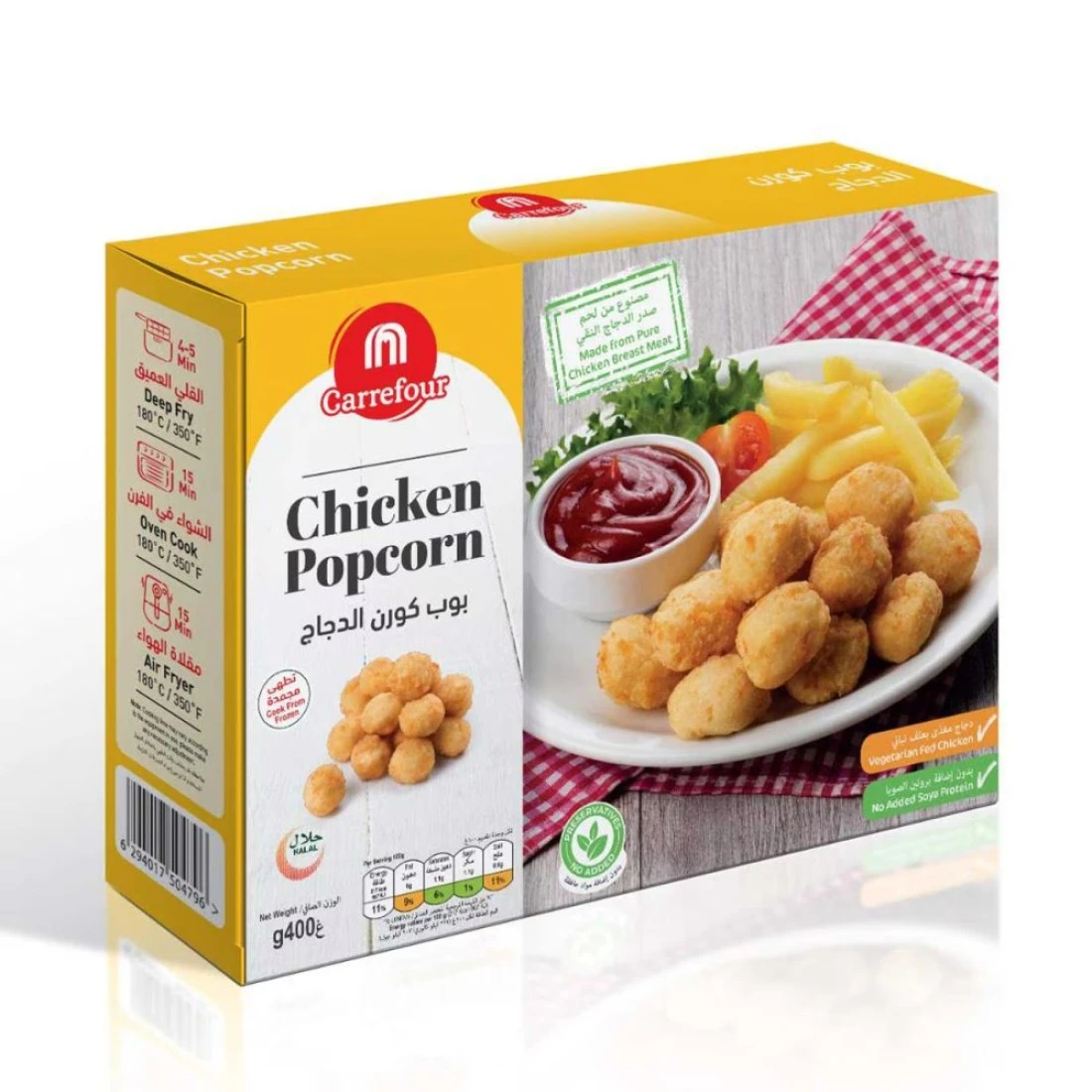 Carrefour Chicken Popcorn is a delicious and convenient snack that is perfect for any occasion. Made from the finest quality chicken, these bite-sized pieces are coated in a crispy and flavourful batter. Whether you're hosting a party or simply looking for a quick and tasty snack, Carrefour Chicken Popcorn is sure to satisfy your cravings. Each pack of Carrefour Chicken Popcorn contains 400g of mouth-watering goodness. The chicken is tender and juicy on the inside, while the crispy coating adds the perfect amount of crunch. These bite-sized pieces are easy to eat and are great for sharing with friends and family. Simply pop them in the oven or fry them up for a quick and delicious treat. Carrefour Chicken Popcorn is made with high-quality ingredients and is free from artificial preservatives and flavours. It is a healthier alternative to traditional fried chicken, as it is baked rather than fried. With its convenient packaging and delicious taste, Carrefour Chicken Popcorn is the perfect snack for any occasion.