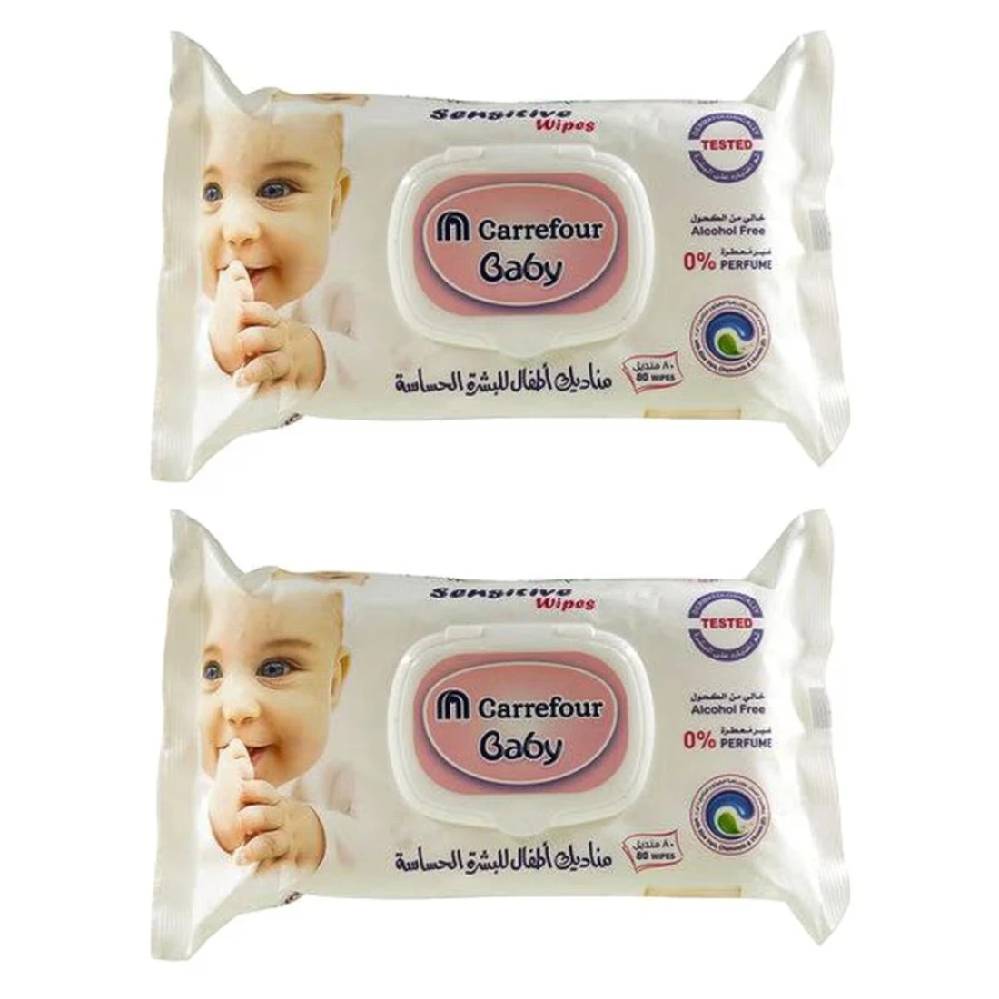 Carrefour Baby Sensitive 80 Wipes Pack of 2