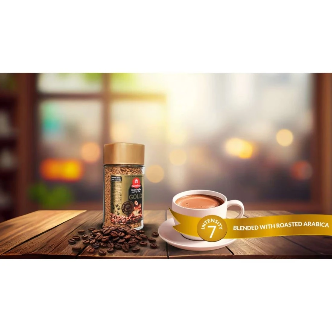 Carrefour Gold Instant Coffee 50g is a high-quality preservative free freeze-dried coffee made from 100% Arabica beans. It is perfect for those who are looking for a delicious cup of coffee without the hassle of waiting for the preparation of the traditional way. Experience a smooth and balanced flavour with a full body and scented aroma. This coffee is sure to keep you energized throughout the day.