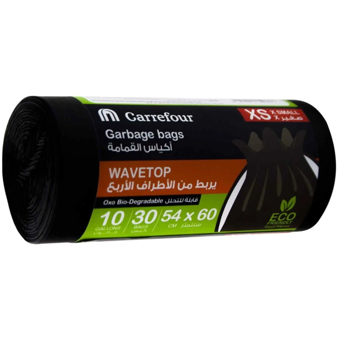 The Carrefour 10 Gallon Wavetop Oxo Biodegradable Black Extra Small 30 Garbage Bags are perfect for small trash cans and waste bins. These bags are made from oxo-biodegradable materials ensuring that they will break down naturally over time. With a 10-gallon capacity, they are ideal for use in kitchens bathrooms, and offices. The wavetop design allows for easy tying and carrying while the black colour provides a sleek and discreet look. Each pack contains 30 garbage bags ensuring that you have plenty on hand for your everyday waste disposal needs.
