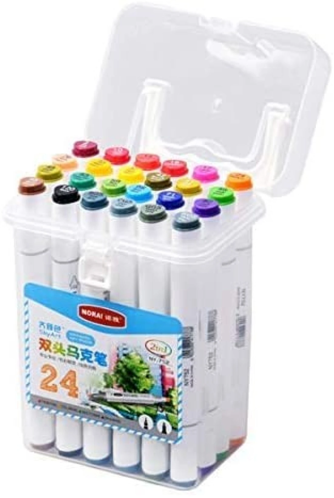 Generic 24 Colors Art Markers Set Dual Heads Broad Fine Point Based Marker Pens With Pp Storage Box