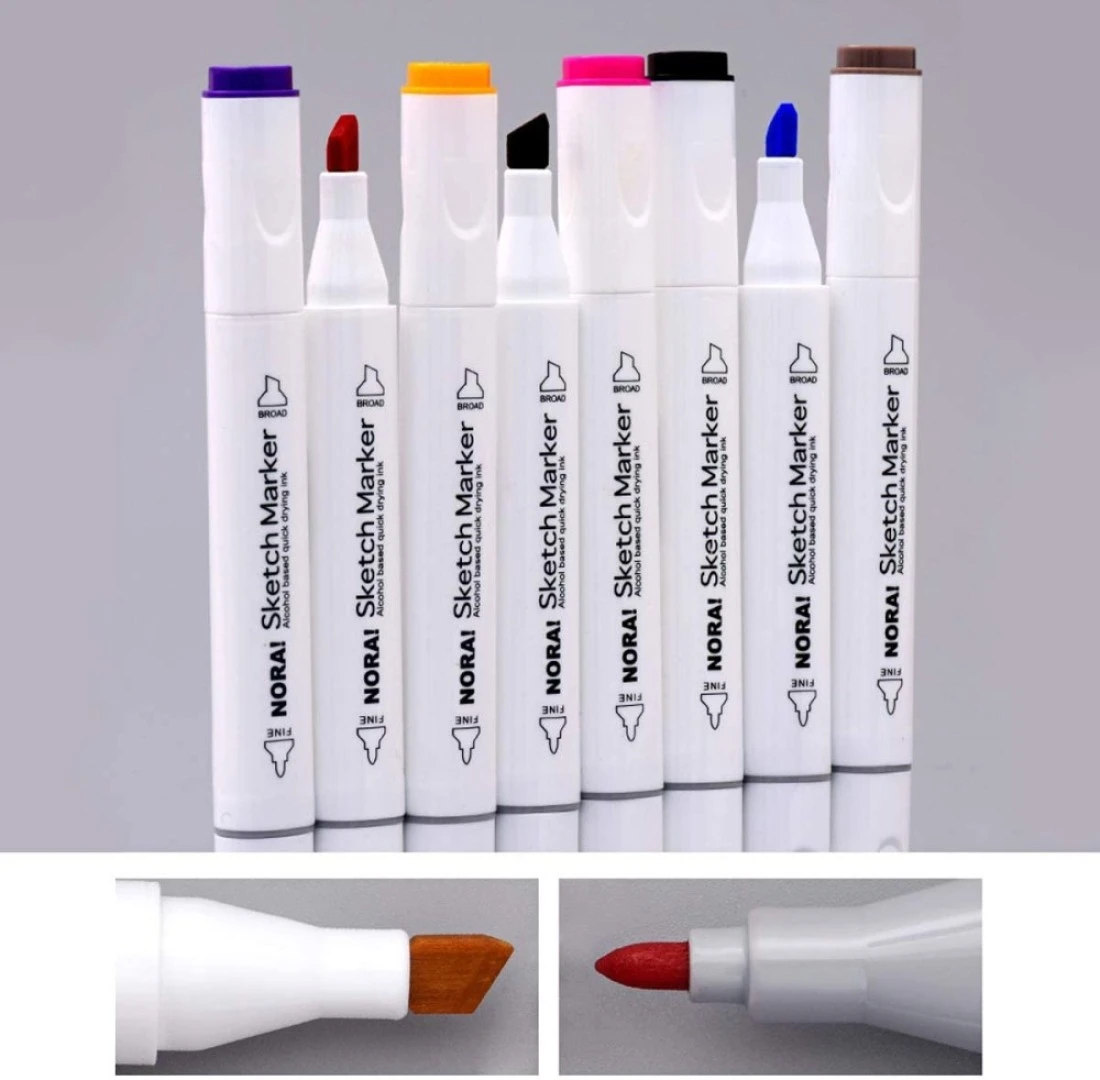 24 Vibrant Colors Markers : 24 colors without duplication, they hold vast amount of ink per marker. Large capacity and based quick drying ink, the writing length is 1000m for fine tip, 700m for broad tip. Perfect for animation, architecture, clothing, interior, product, landscape, graphic, student practice design.