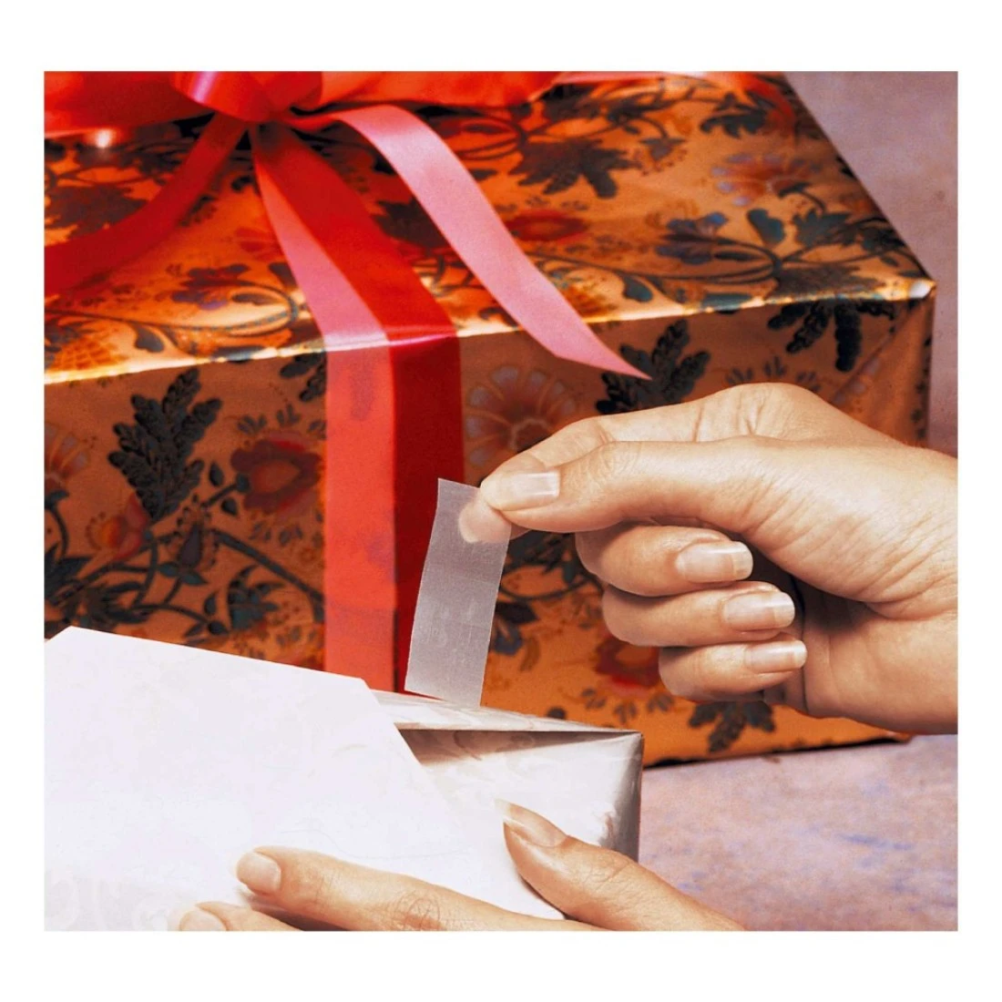 - The original satin-finish, gift wrapping tape, disappears on most gift wrap papers