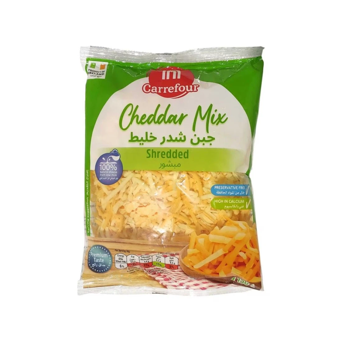 - The carrefour cheddar mix shredded cheese can be sprinkled over pizza, burgers, tacos, pasta and sandwiches