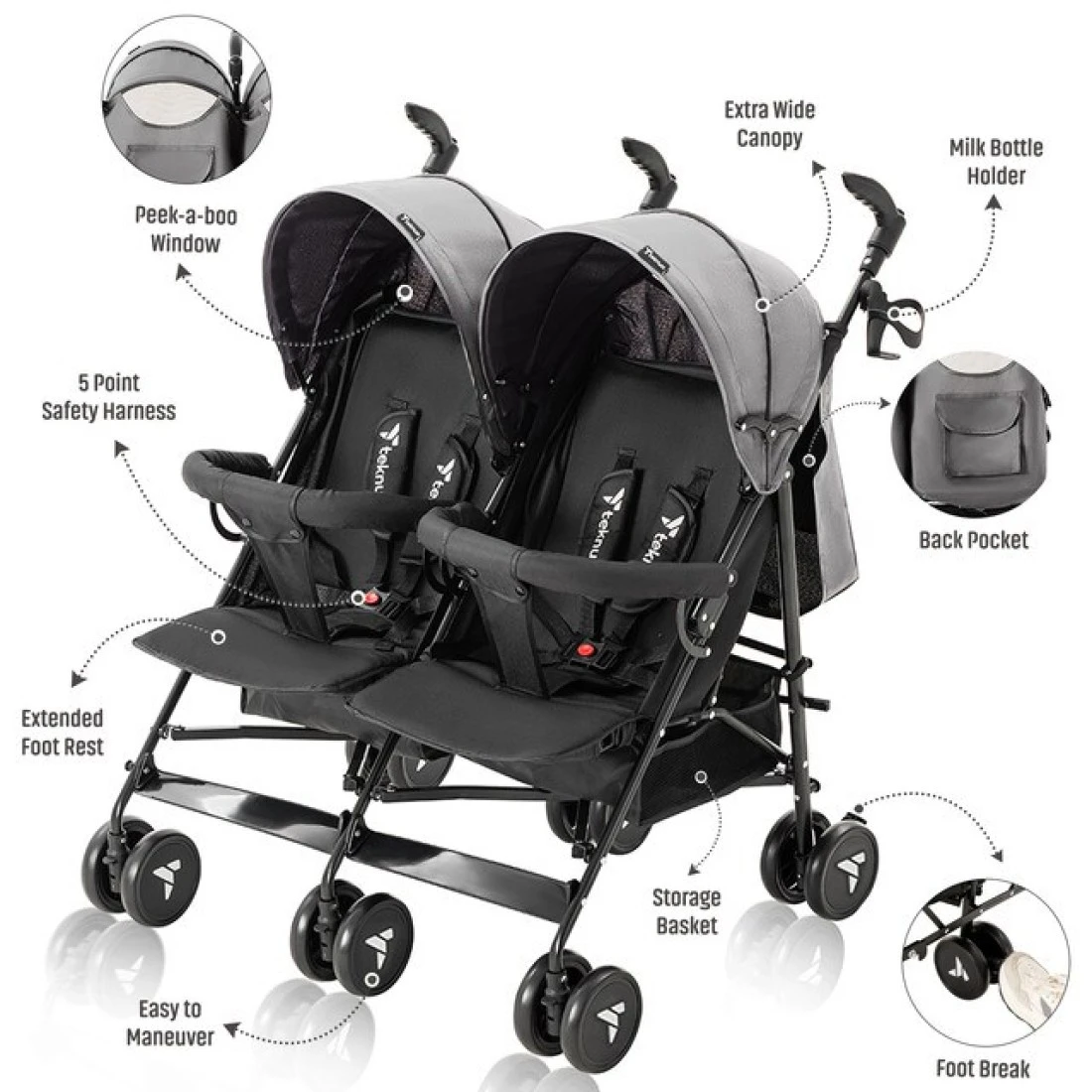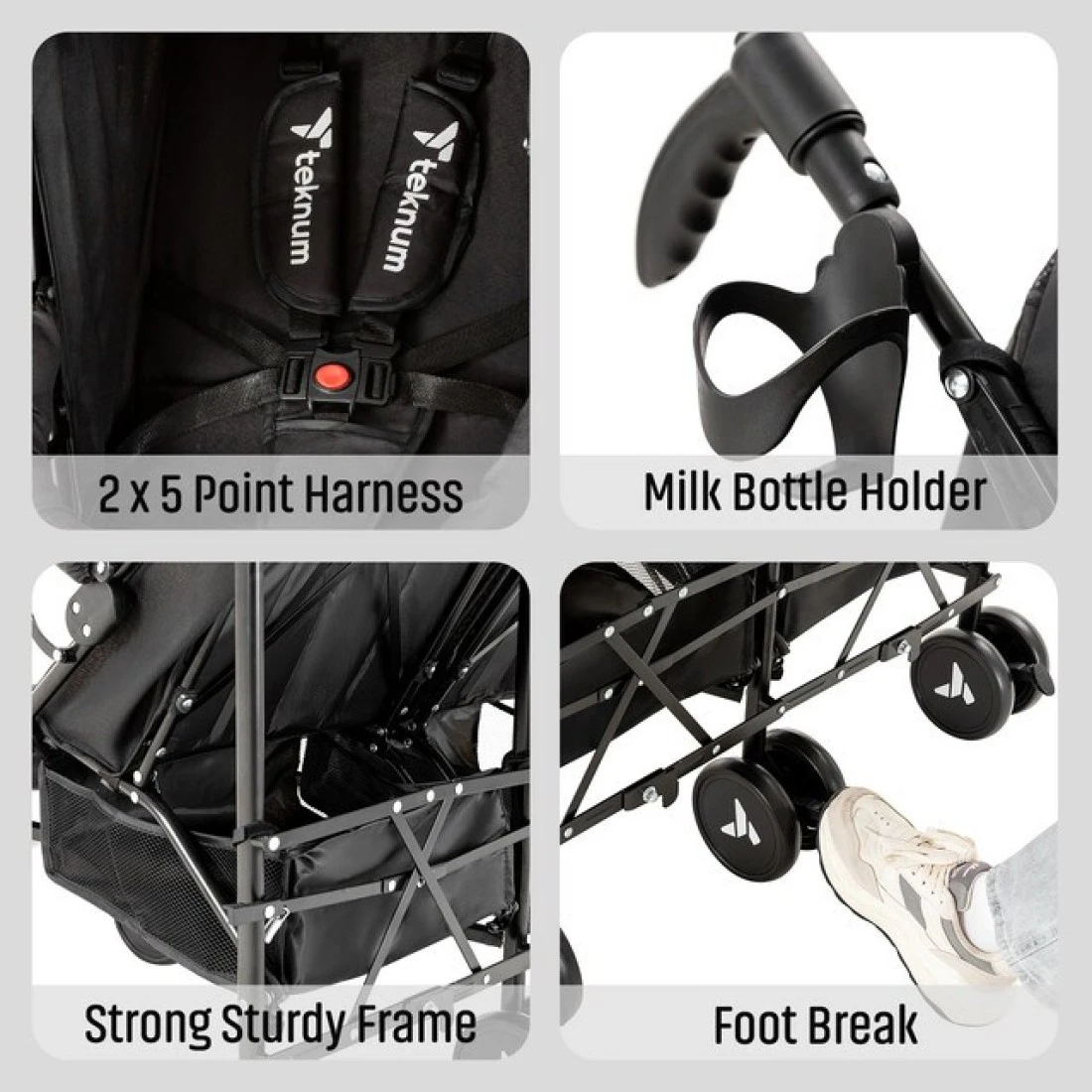 • Teknum Twin Stroller Fellow is fit to use for kids up to 3 years for two babies each up to 15 kgs (0 - 15kg X 2)
