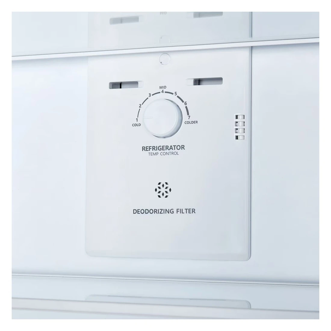 - Top mount design features a large freezer compartment for easy access to frozen foods