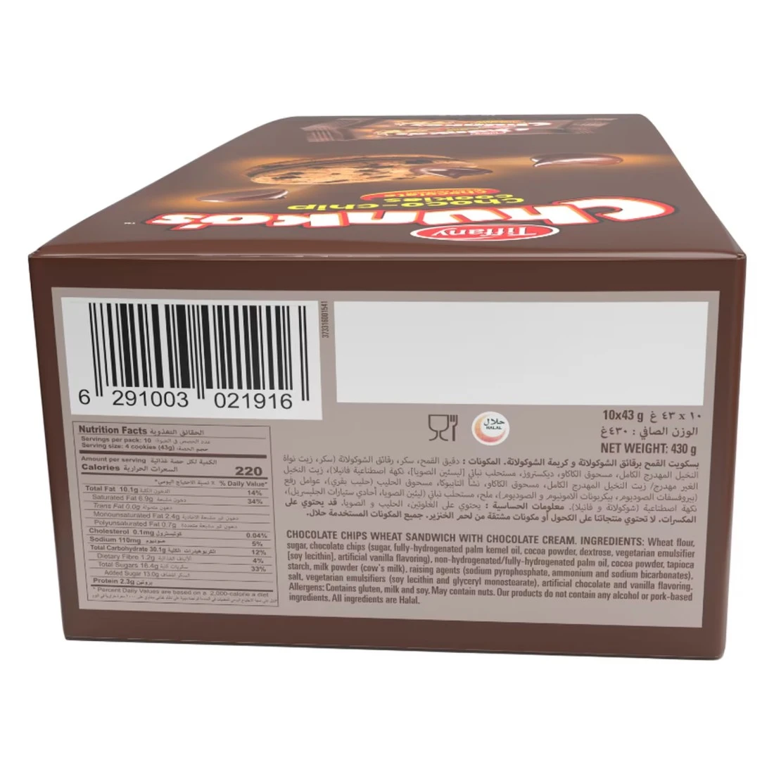 ingredients : Wheat Flour, Sugar, Chocolate Chips (Sugar, Fully-hydrogenated Palm Kernel Oil, Cocoa Powder, Dextrose, Vegetable Emulsifier Soy Lecithin, Artificial Vanilla Flavor), Non-hydrogenated/fully-hydrogenated Palm Oil, Cocoa Powder, Tapioca Starch, Milk Powder (Cow Milk), Raising Agents (Acid Sodium Pyrophosphate, Ammonium and Sodium Bicarbonates), Salt, Vegetarian Emulsifiers (Soy Lecithin, Glyceryl Monostearate and Sodium Stearoyl-2-lactylate), Artificial Chocolate and Vanilla Flavours