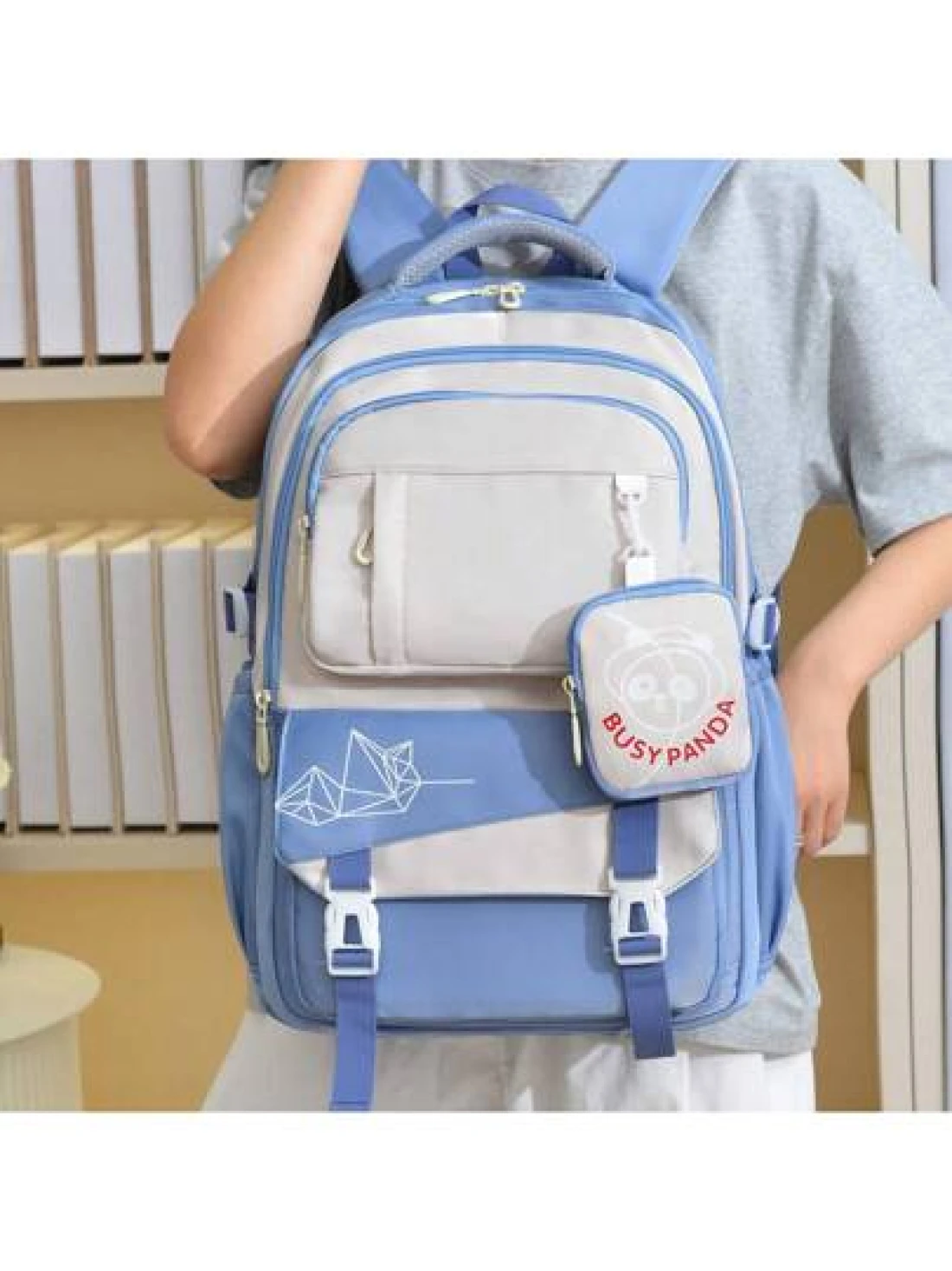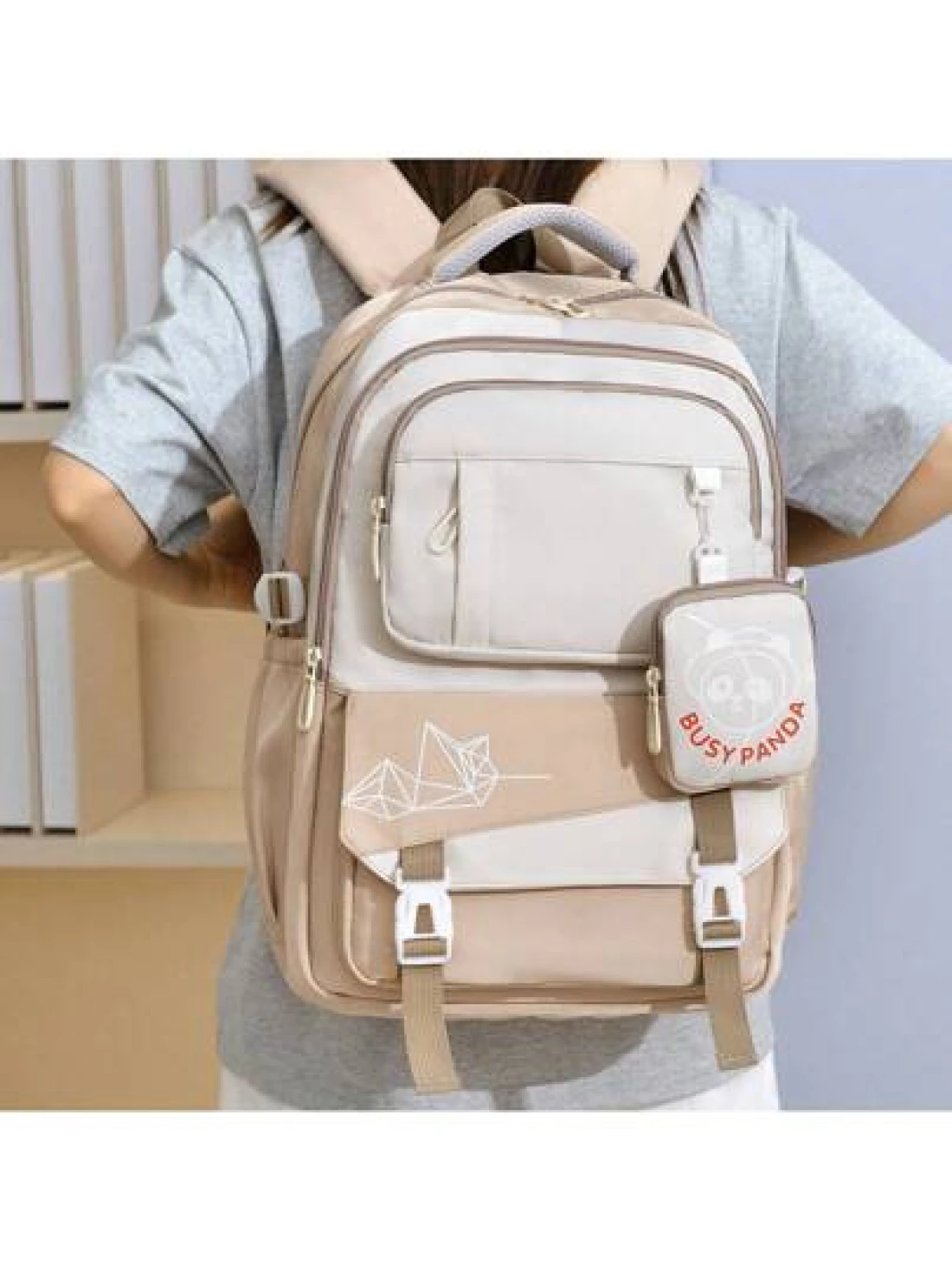 Cartoon Print Backpack For Female High School College Students Travel Bag Weight Reducing