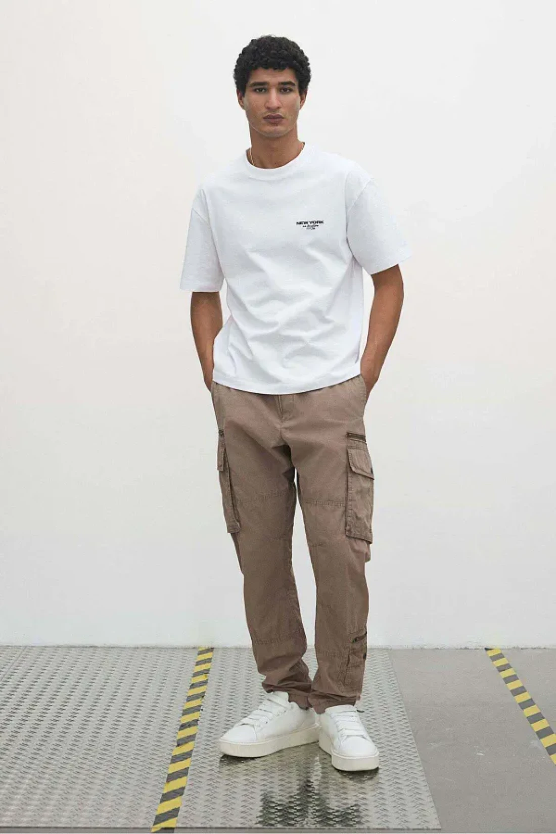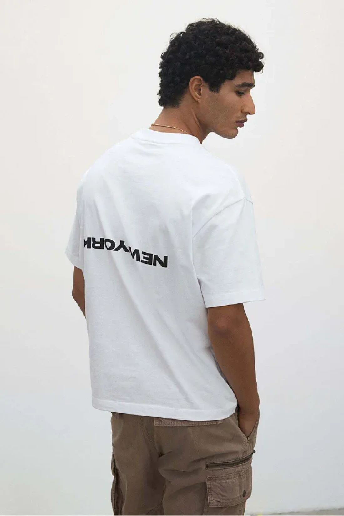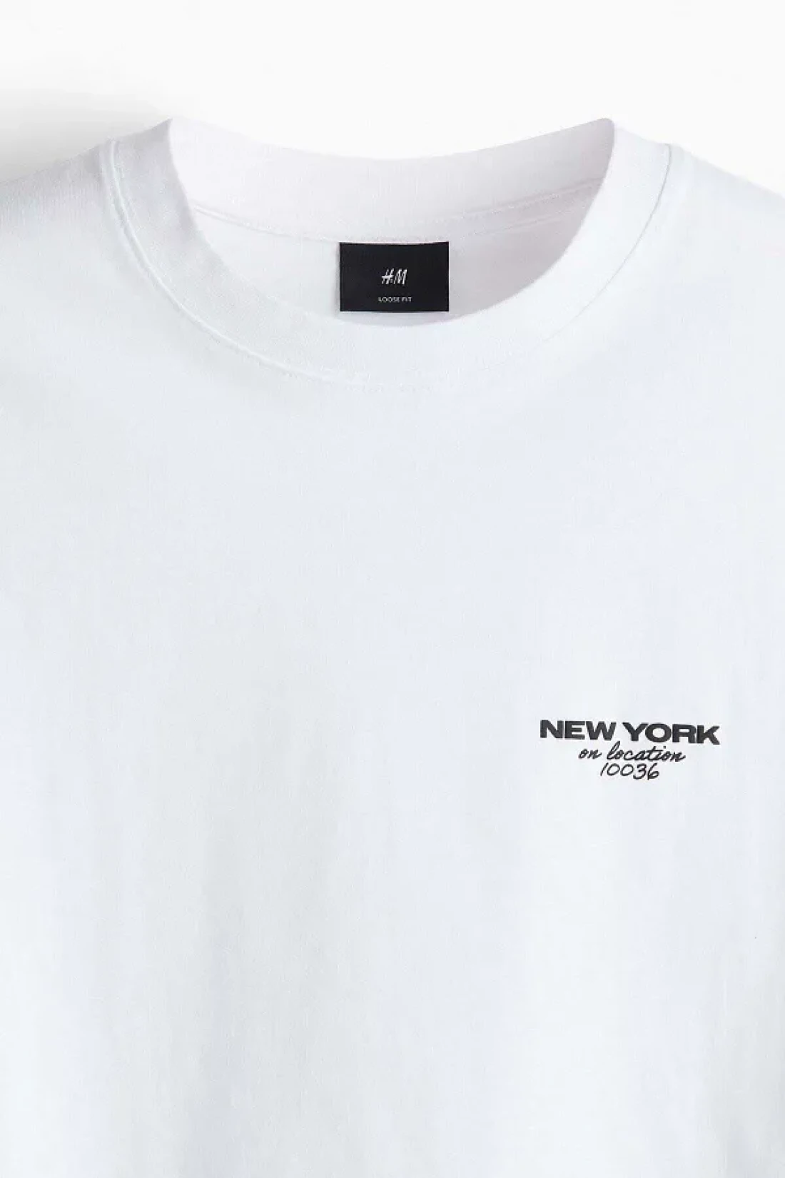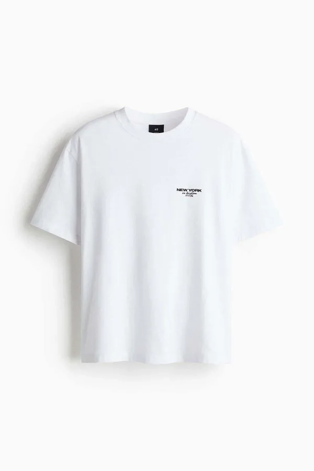 T-shirt in midweight cotton jersey with print motifs, round, rib-trimmed neckline, dropped shoulders and a straight-cut hem.