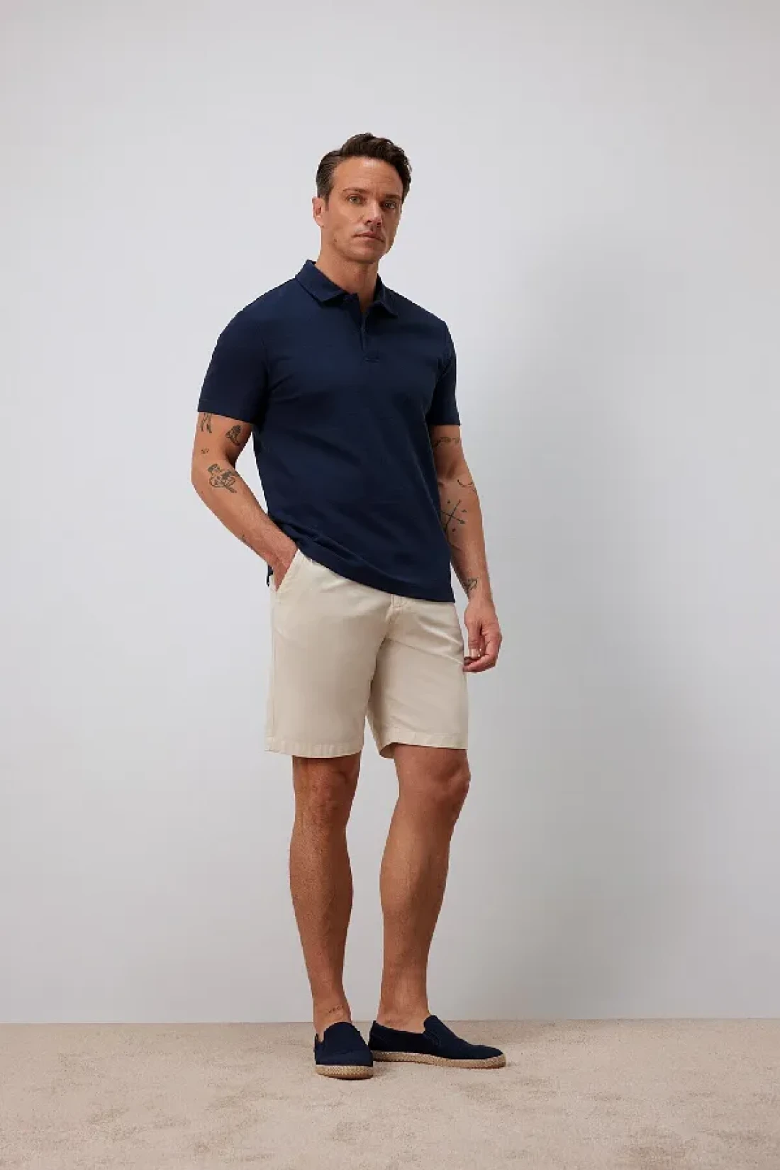 Defacto Regular Fit Polo Neck Textured Basic Plain Short Sleeve T-Shirt B4939Ax25Sm