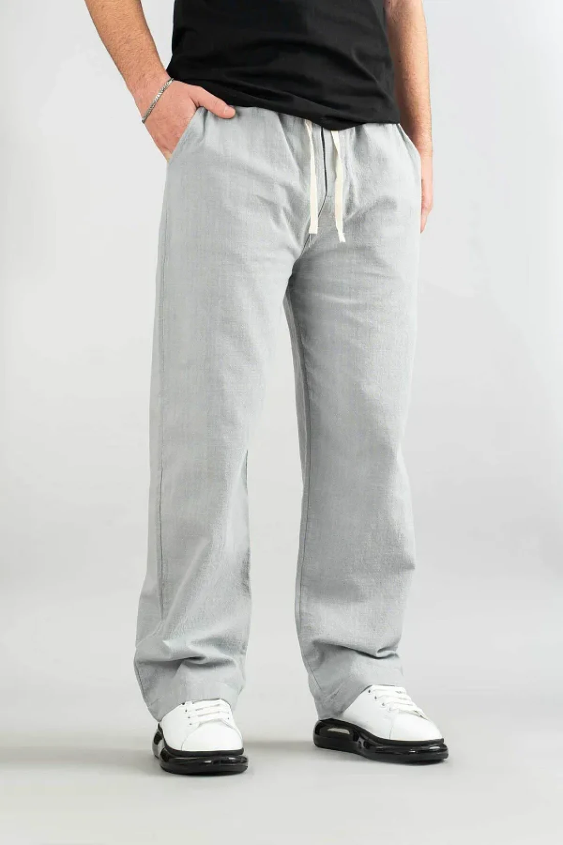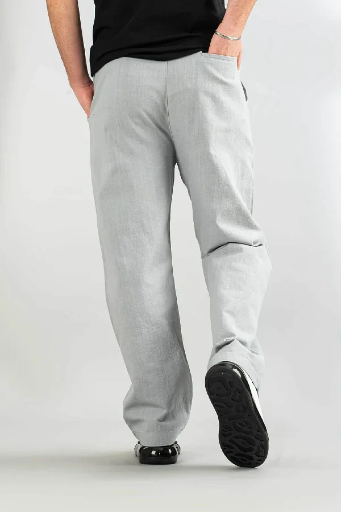 bombe Men's Gray Linen Trousers Elastic Waist Cotton Casual Pants