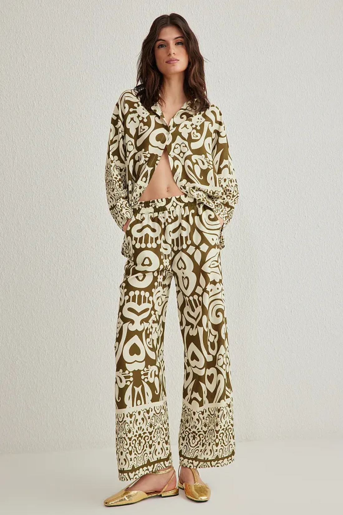 Collection Khaki Woven Bottom-Top Set Twoss24Au00082
